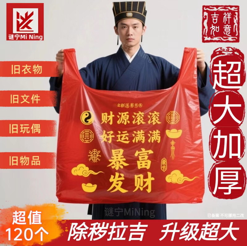 扔衣服袋子红色除秽拉吉转运袋旧衣服加大塑料袋手提加厚加大吉祥