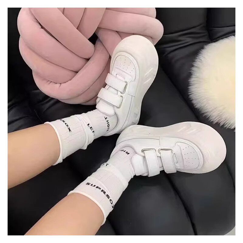 皮面魔术贴面包鞋女2026年春季新款厚底小白鞋增高松糕运动休闲鞋