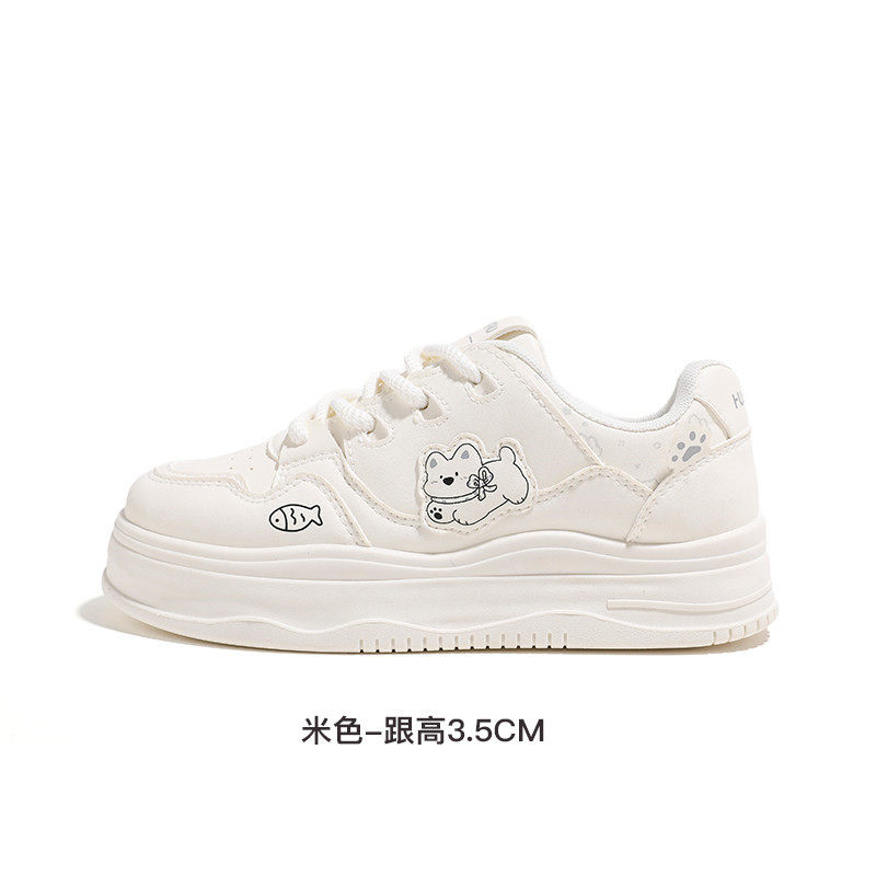 可爱风卡通小白鞋女厚底增高鞋子ins百搭学生休闲板鞋小众面包鞋