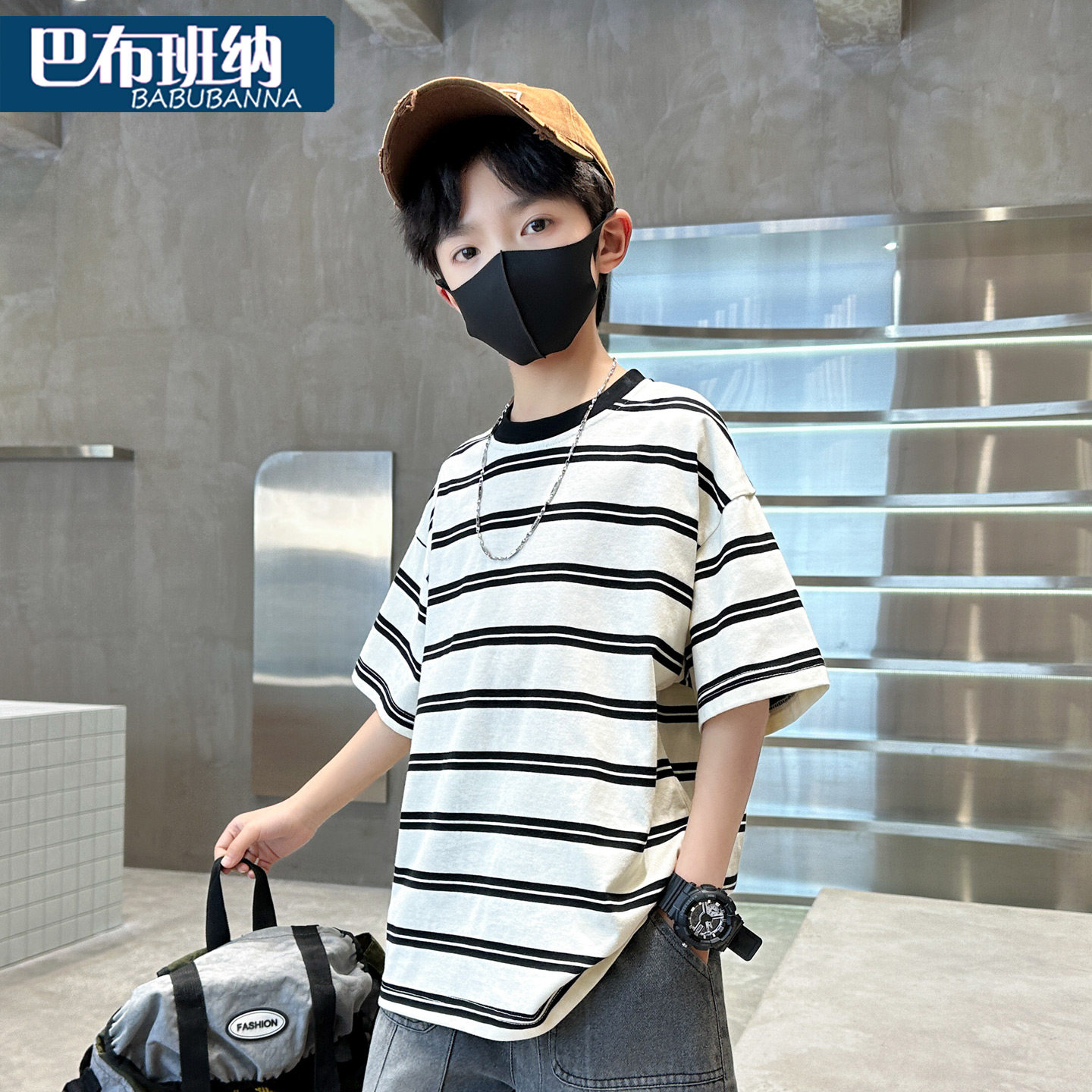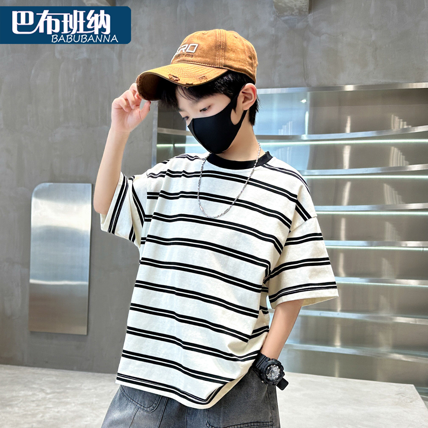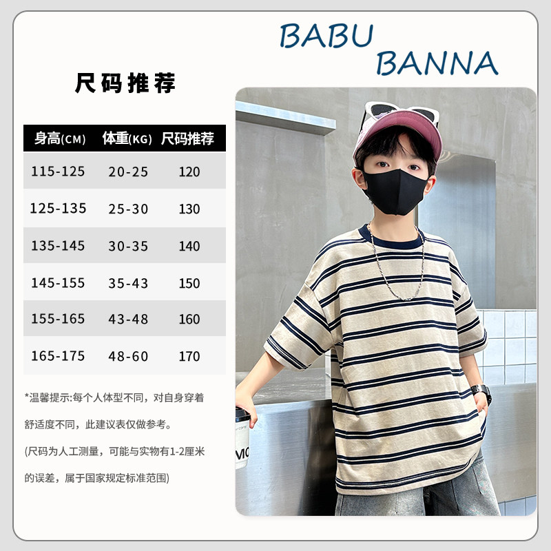 男童短袖t恤夏季2026新款儿童夏装条纹上衣大童体恤时髦男孩衣服