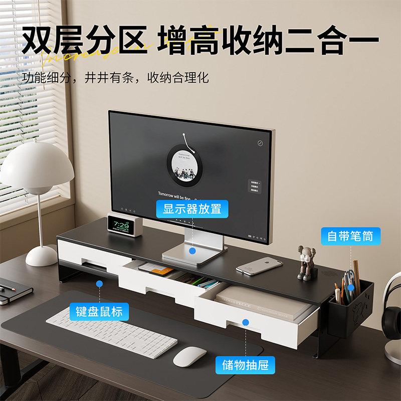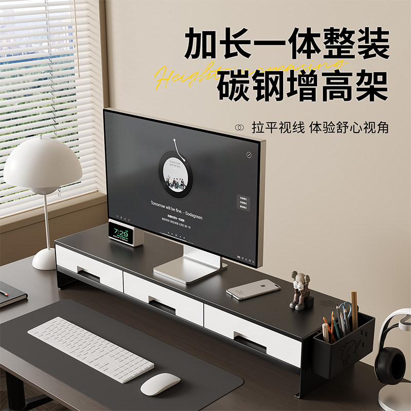 台式电脑增高架工位办公桌置物架加长抽屉收纳盒底座屏幕金属支架