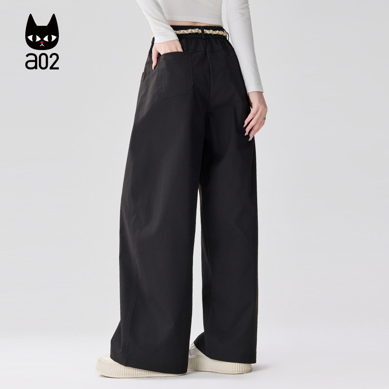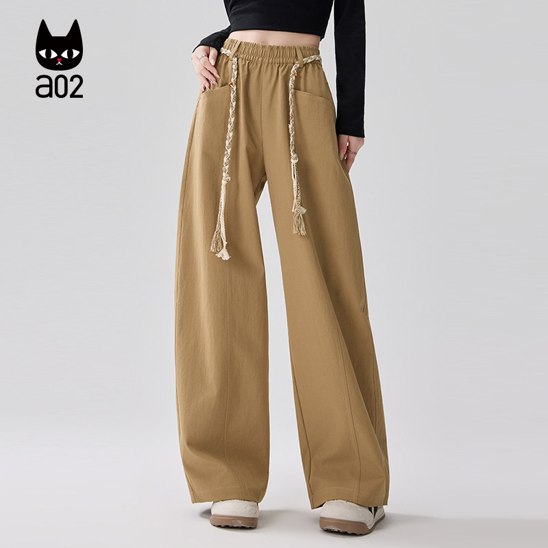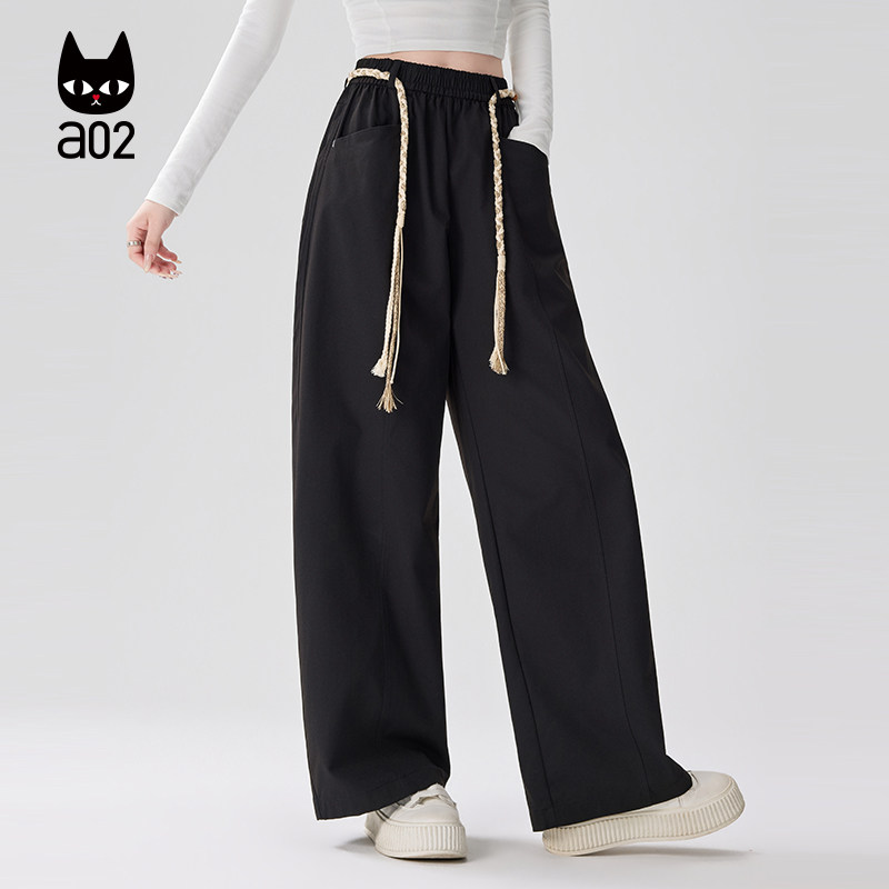 a02宽松直筒裤子女款2026新款春夏薄款编织设计感休闲阔腿长裤