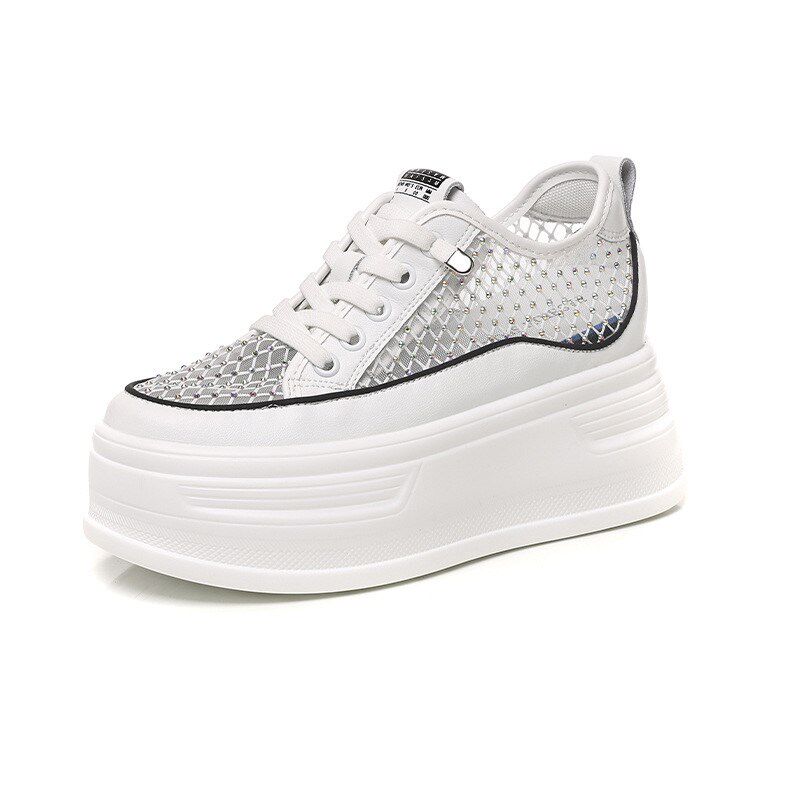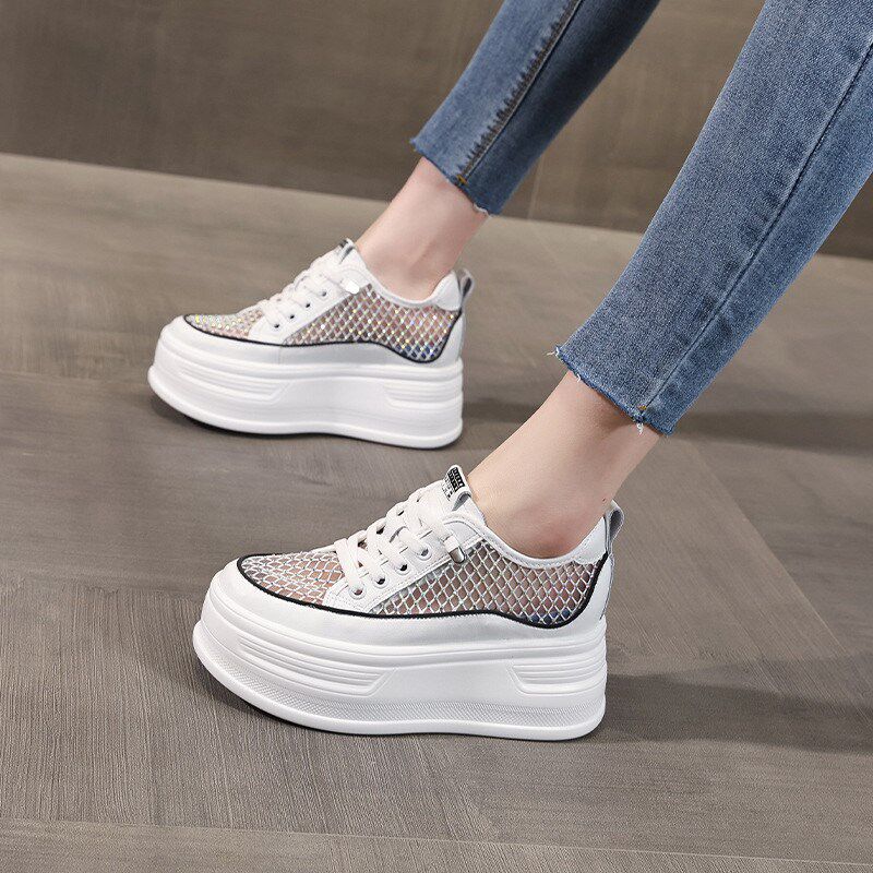 夏天薄款蕾丝网面透气内增高女鞋厚底2025新款板鞋休闲网鞋小白鞋