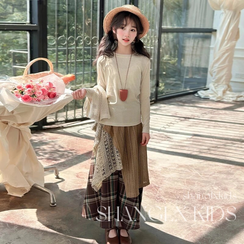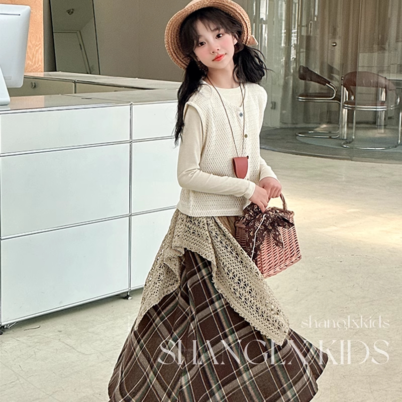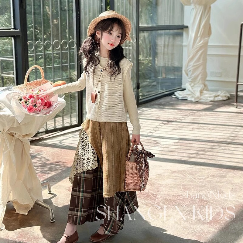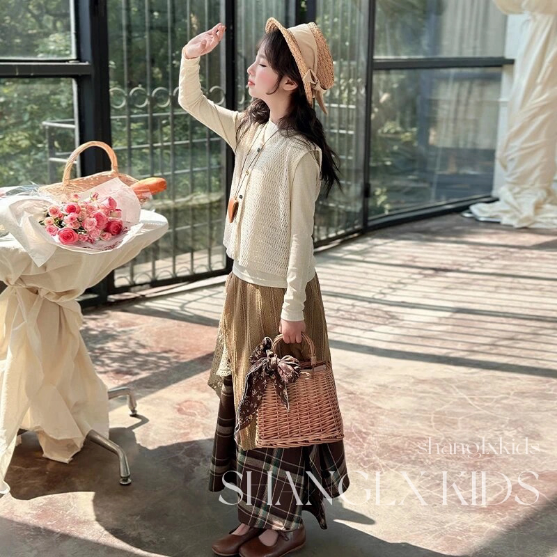 法国Uamtor女童春秋款2025新款洋气套装韩系高级感穿搭裙子三件套