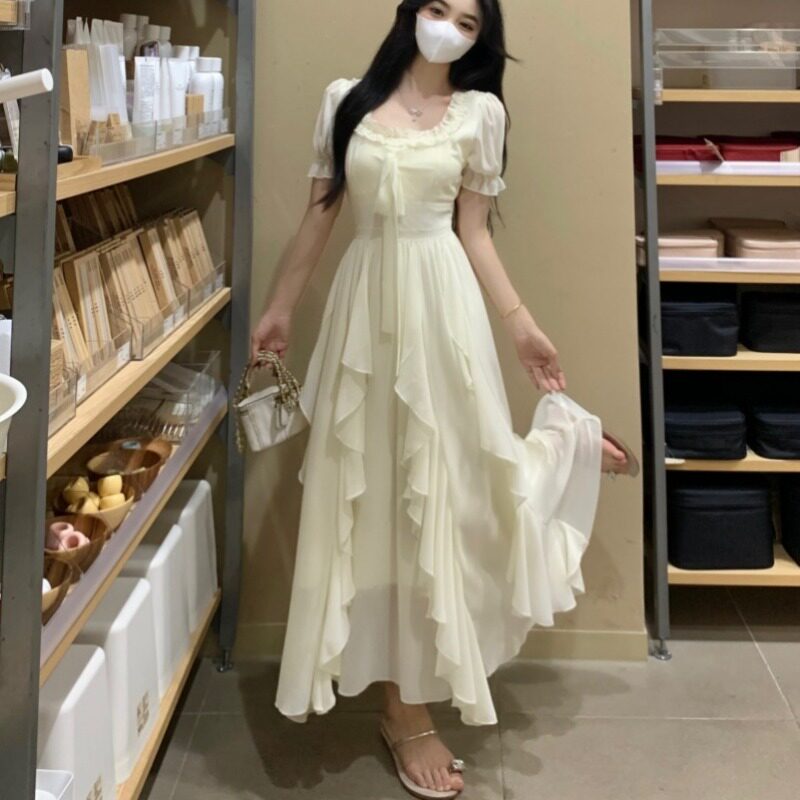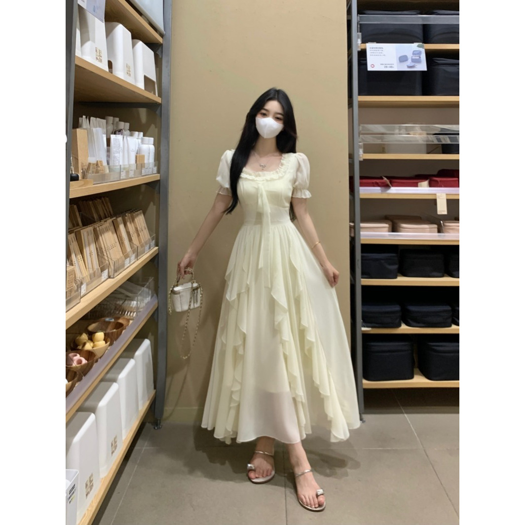 大码仙女杏色连衣裙2026新款微胖mm海边遮肚显瘦法式长裙子夏季