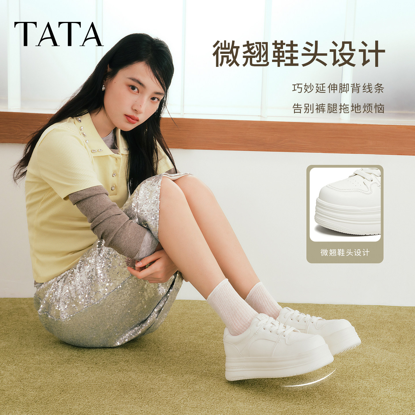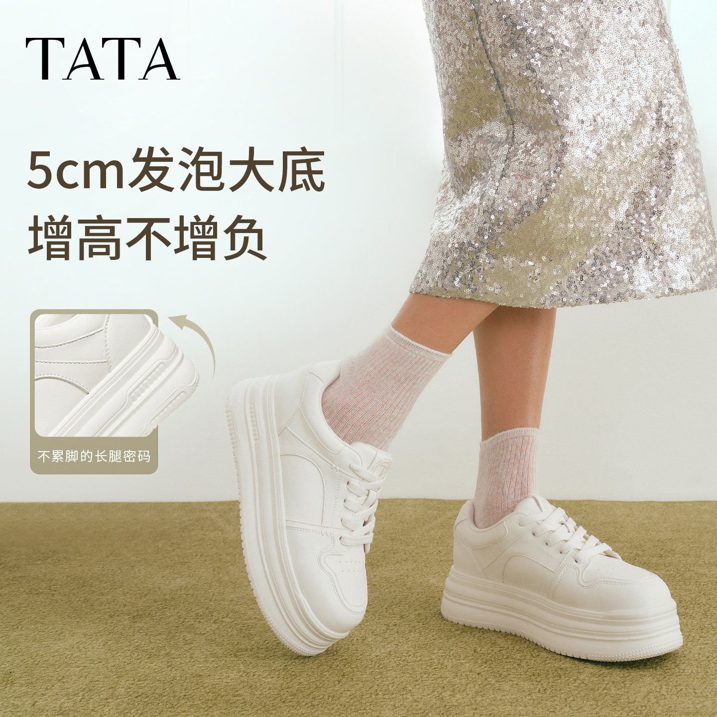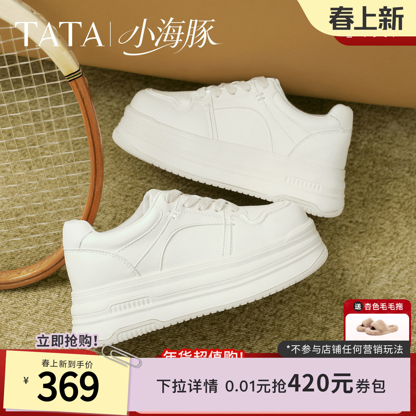 TATA他她小海豚板鞋女鞋春季款增高小白鞋厚底百搭学生鞋CLR01AM6