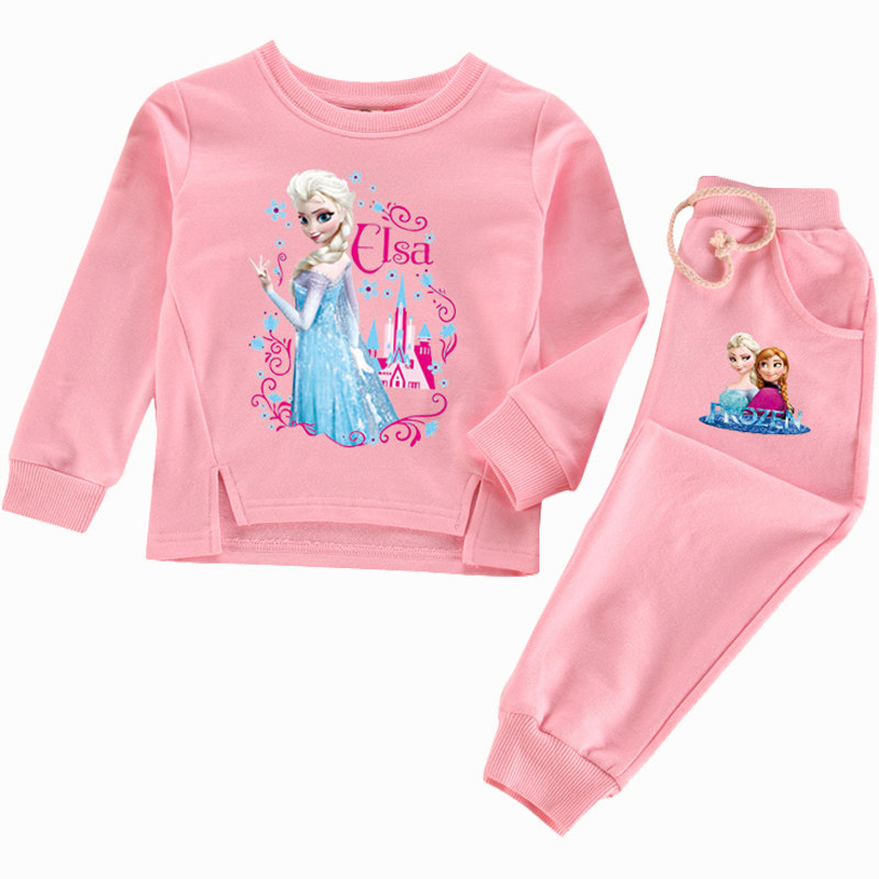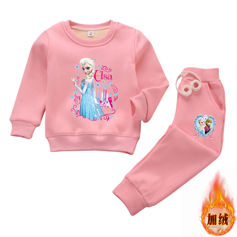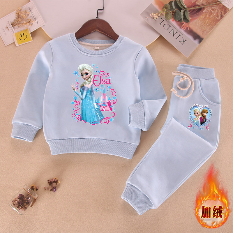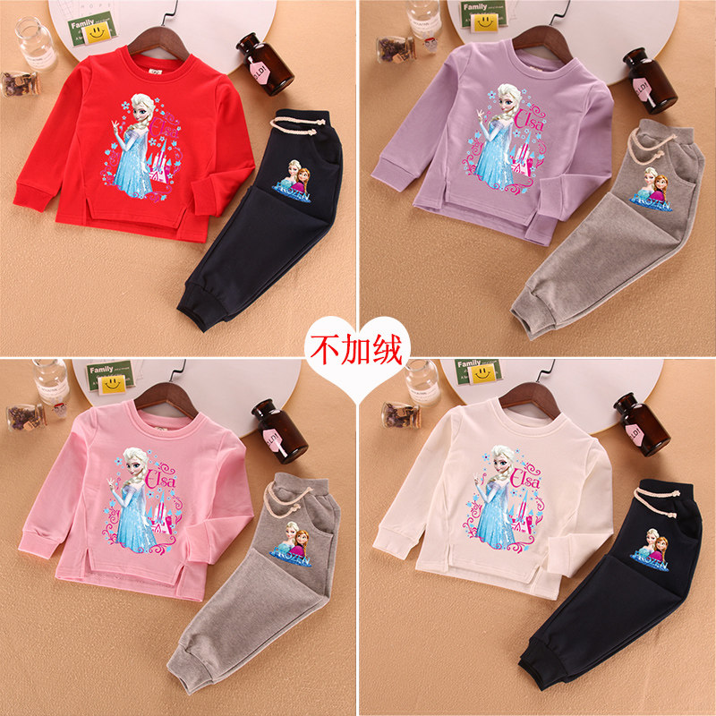 爱莎公主童装女童春秋季纯棉套装宝宝艾莎秋冬薄绒加绒卫衣运动装