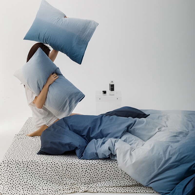 潮牌个性简约冷淡风纯棉男生宿舍渐变色条纹全棉床单被套三四件套