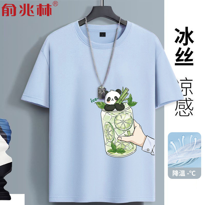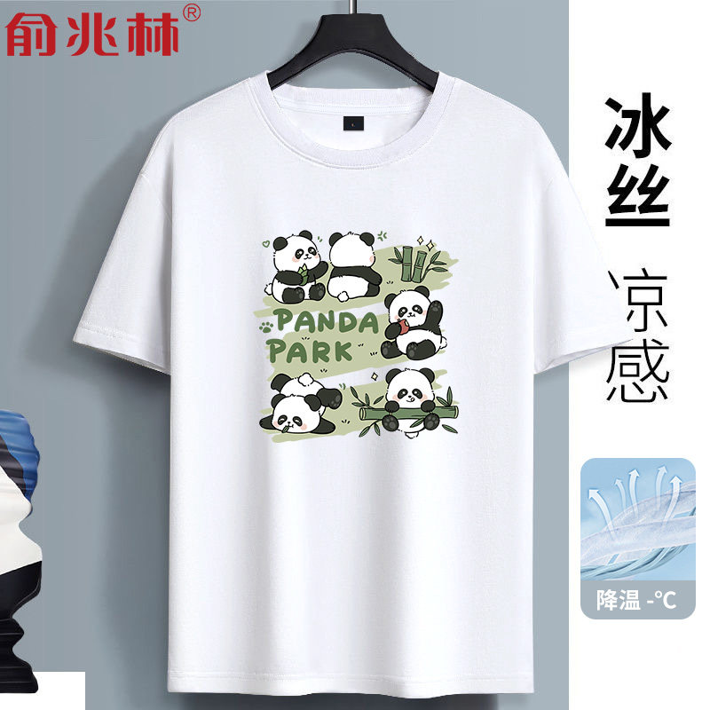 熊猫冰丝短袖t恤男夏速干透气衣服2025新款青少年高中初中生夏装