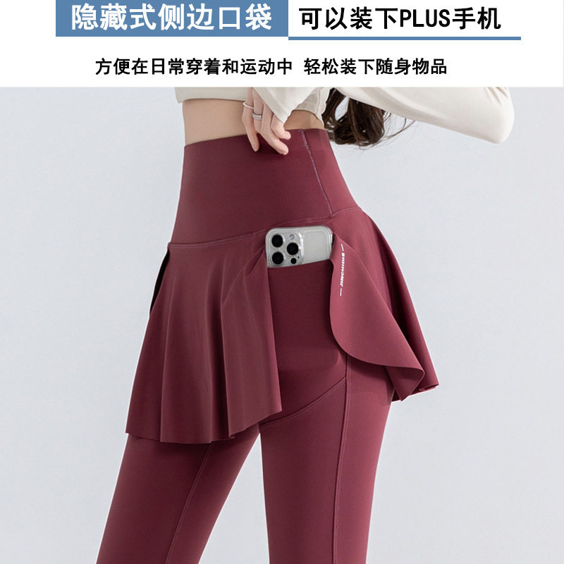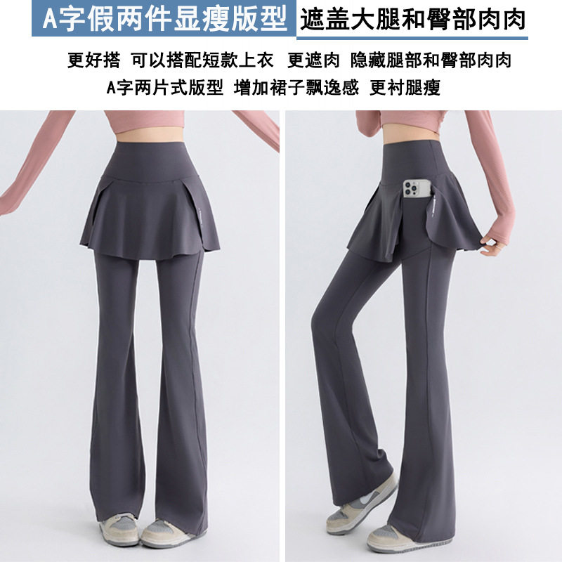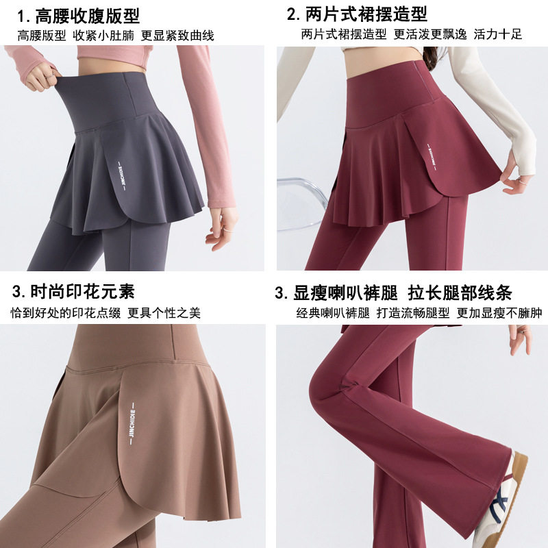 大码瑜伽裤女假两件遮挡裙屁帘加肥提臀训练运动微喇叭阔腿健身裤