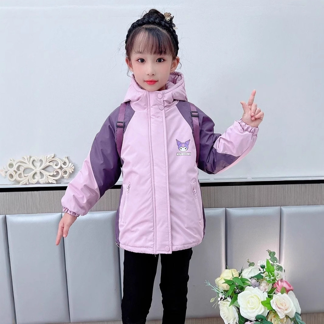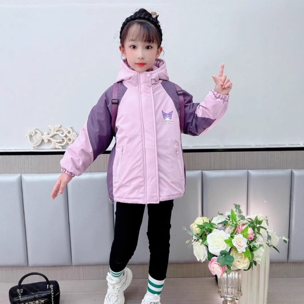 女童冲锋衣外套早春夹棉薄棉儿童春装2026新款防风上衣女大童初春