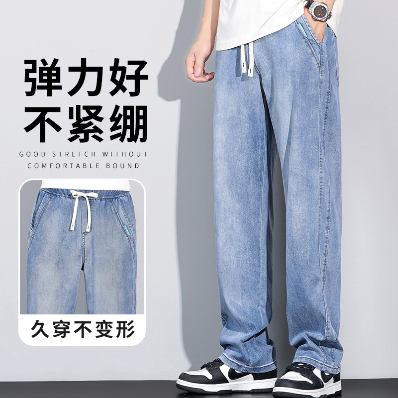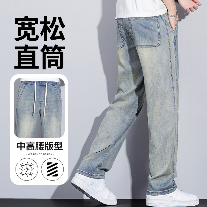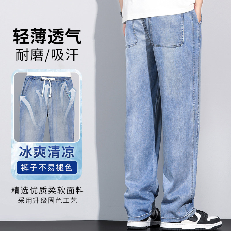 罗蒙冰丝牛仔裤男夏天薄款2026新款垂感夏季宽松阔腿男生休闲长裤