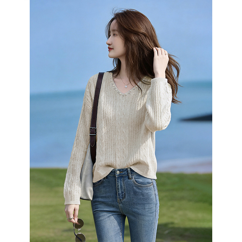 2026春季穿搭新款女装套头V领毛衣针织衫独特漂亮早春气质上衣