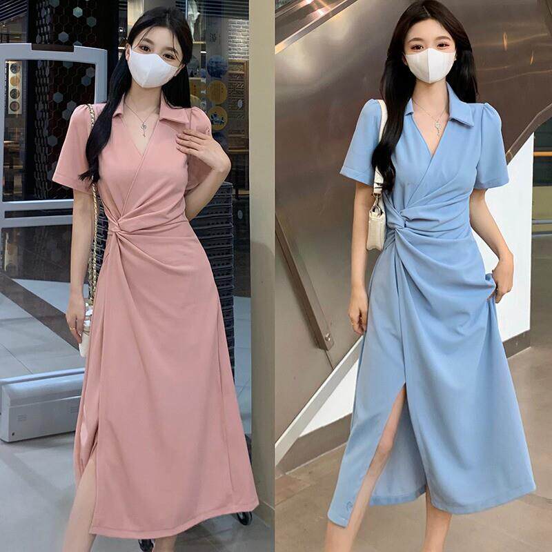 大码女装胖mm海边度假连衣裙女夏季开叉遮肚藏肉包臀显瘦中长裙子