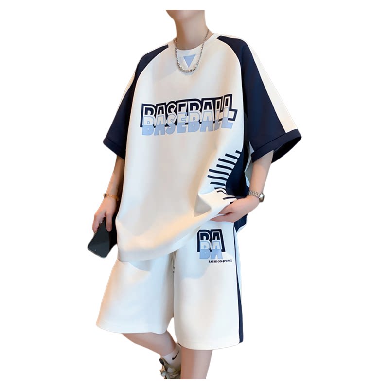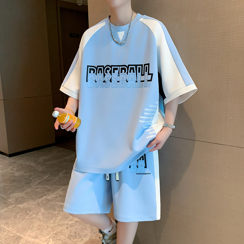 青少年夏季新款短袖t恤男孩初中学生冰丝大童运动短裤套装男装潮