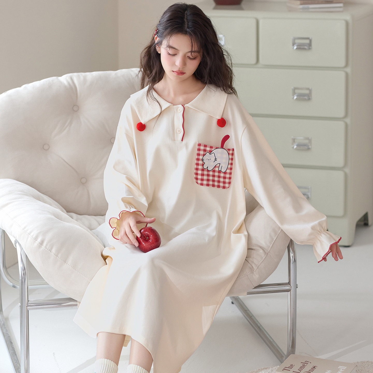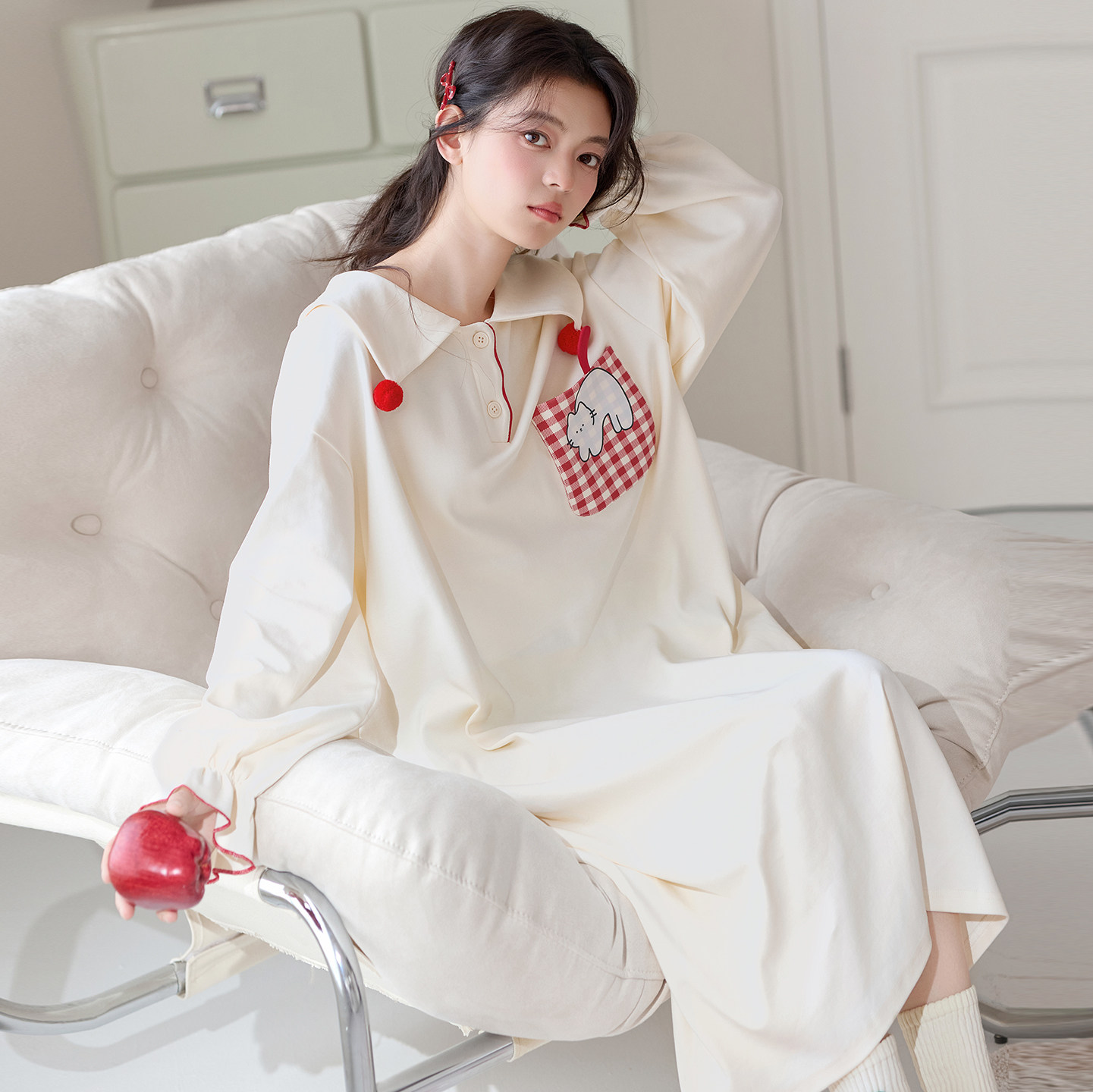 都市丽人纯棉睡裙女睡衣春秋款2026新款长袖甜美连衣裙女生可外穿