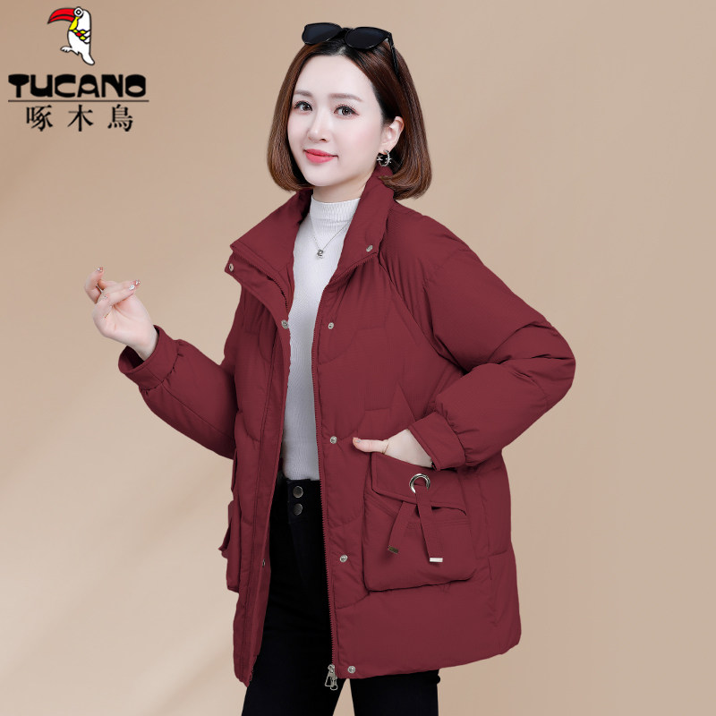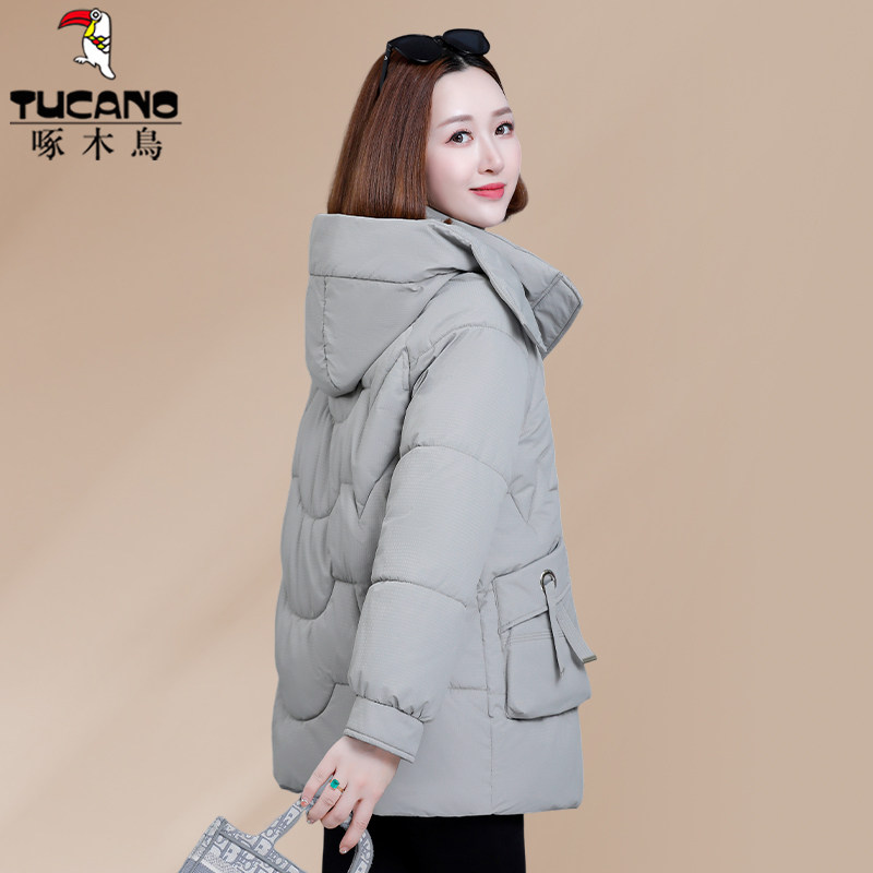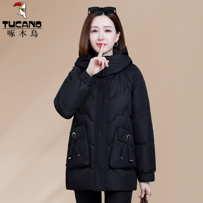 啄木鸟中长款羽绒棉服女款2025新款冬季妈妈冬装棉袄女士棉衣外套