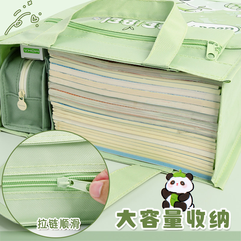 熊猫补习袋!手提袋学生拎书袋小学生补课包儿童男孩帆布美术袋大容量作业收纳袋初中女生专用补习班手提书包