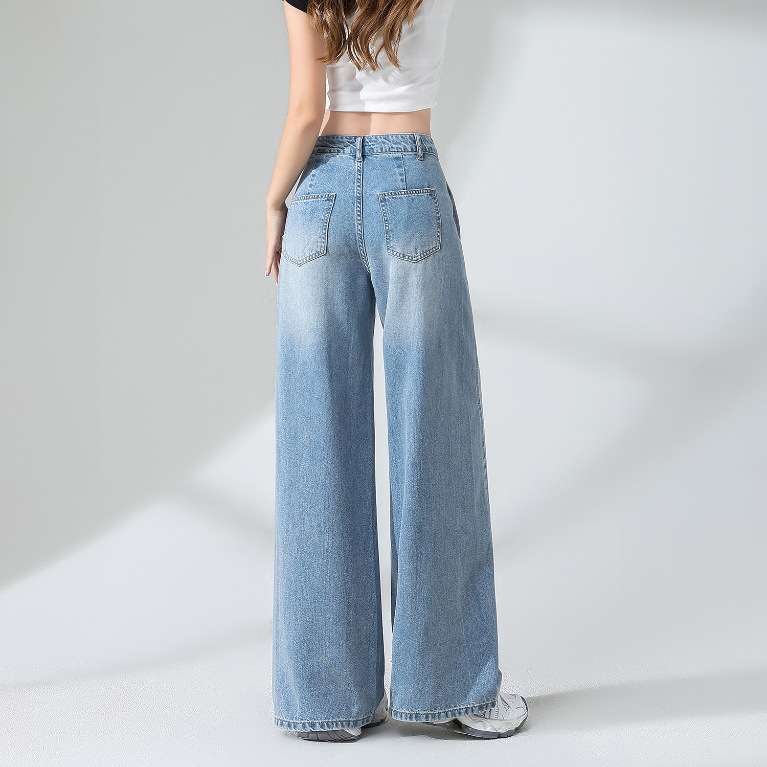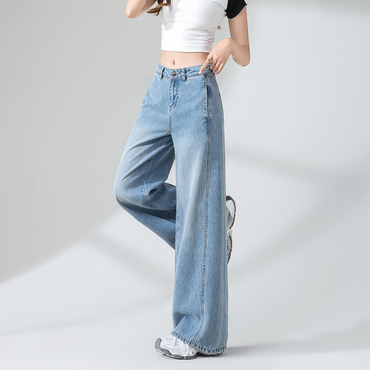 浅蓝天丝牛仔裤女款2026夏季年新款高腰显瘦时髦辣妹宽松阔腿裤子