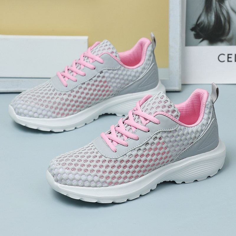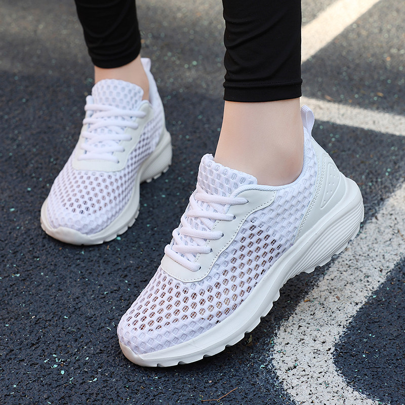 女鞋全黑色防滑厚底运动鞋女夏季镂空透气久站不累脚上班工作网鞋