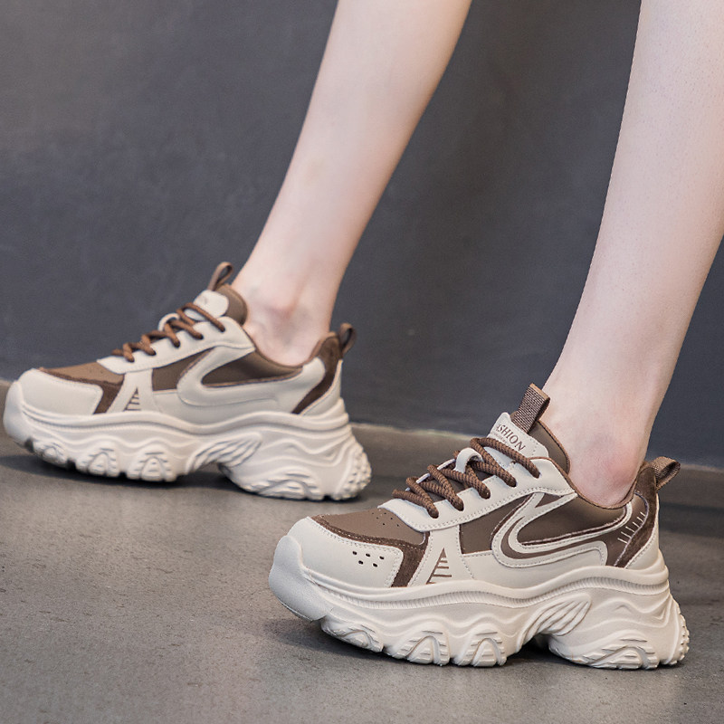 真皮爆款老爹鞋女增高7cm秋冬新款百搭轻便松糕鞋厚底运动休闲鞋