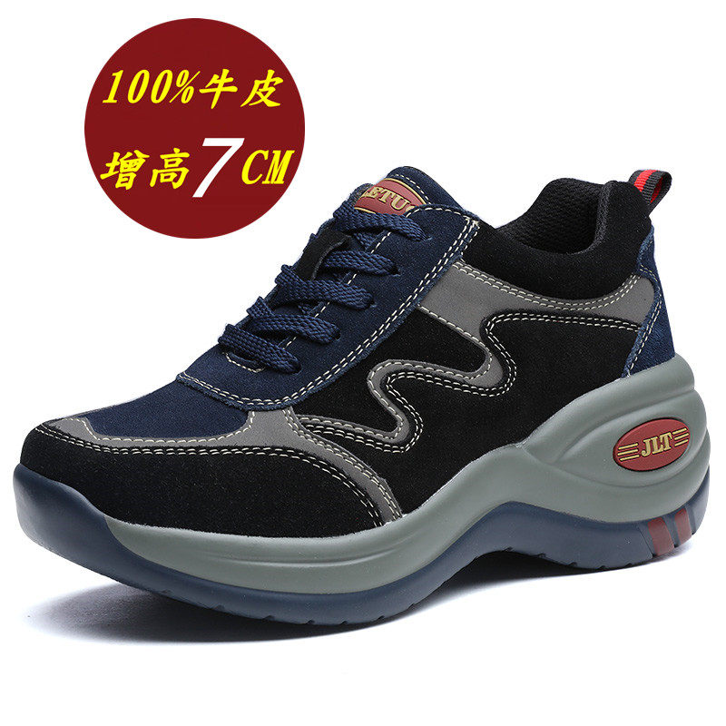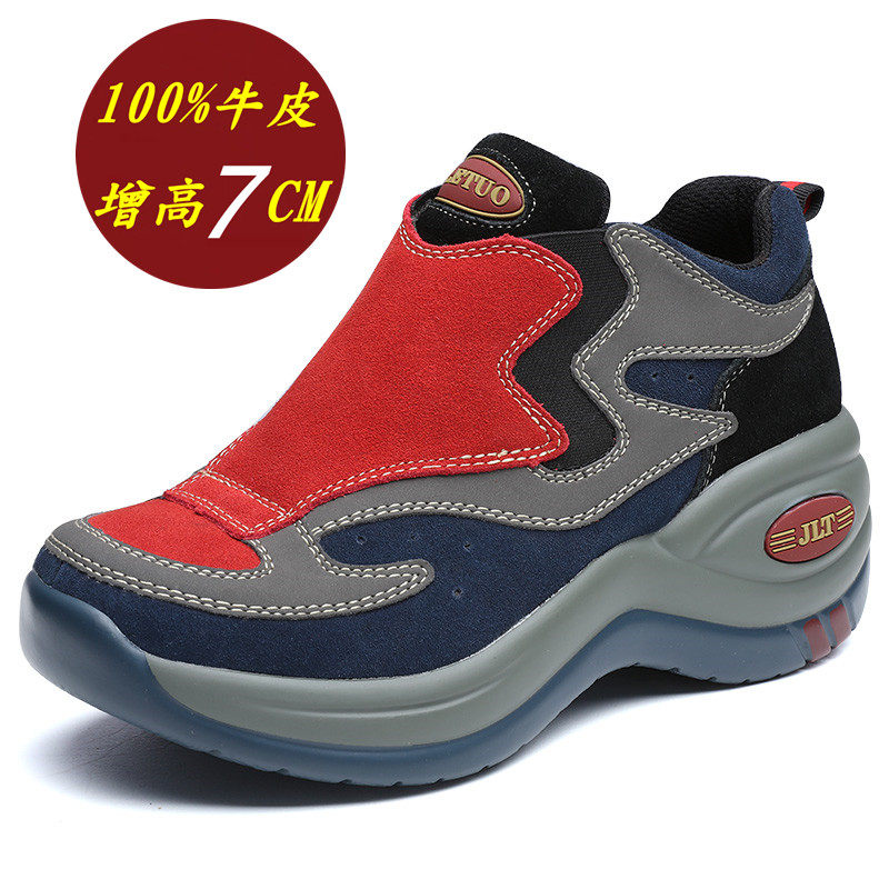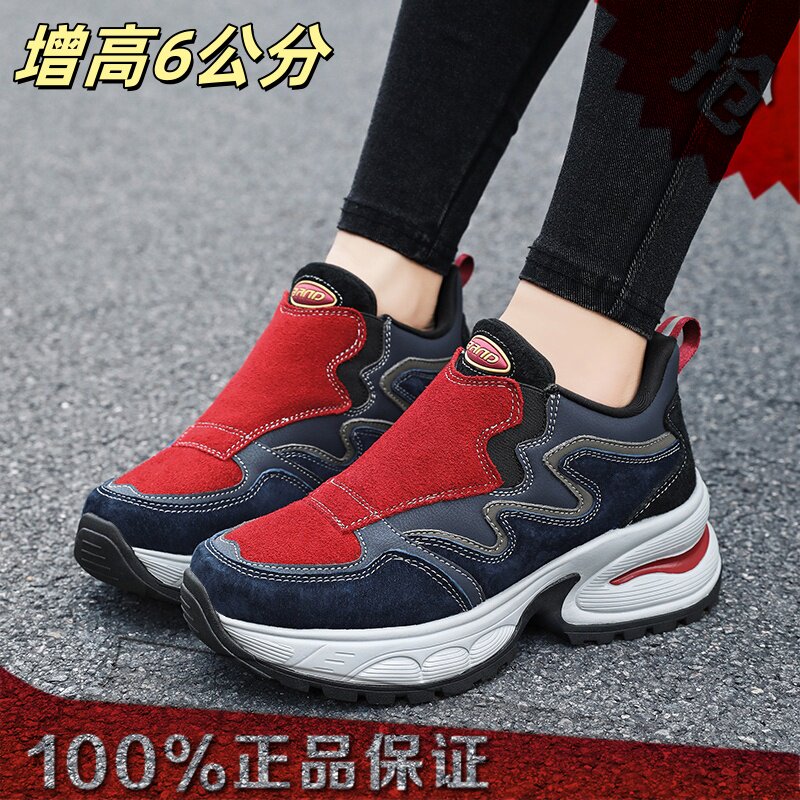 牛皮老爹鞋女增高7CM厚底户外休闲鞋复古拼色增高鞋一脚蹬运动新