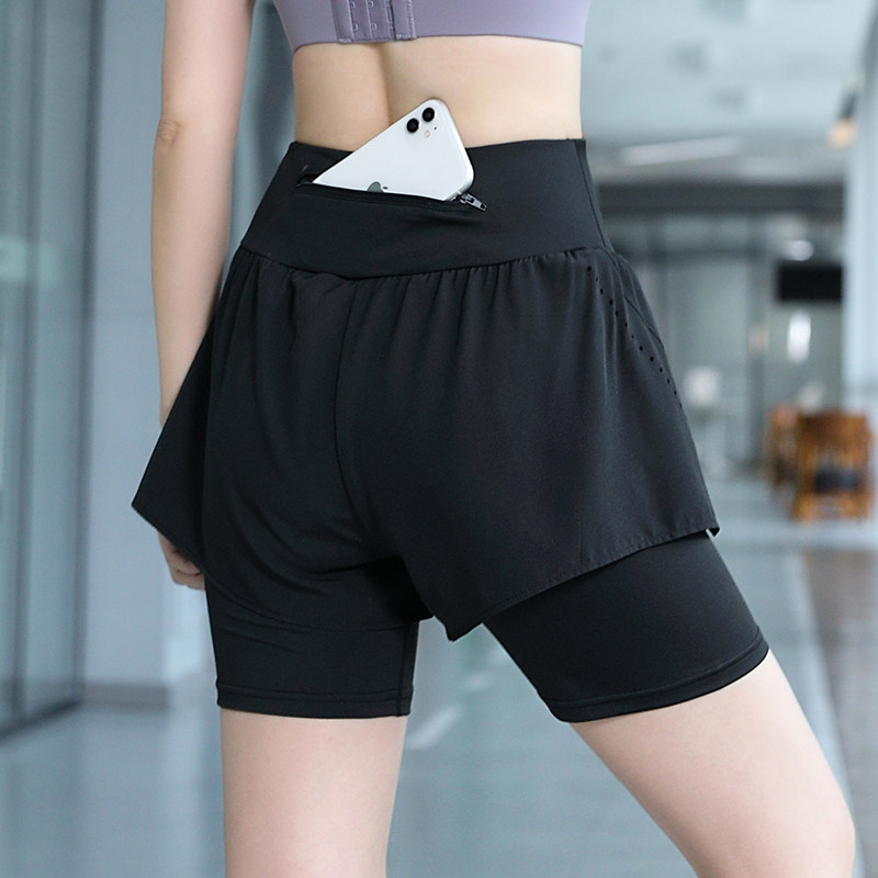 夏天大码假两件带长裤瑜伽服紧身薄款健身房跑步运动速干提臀女裤