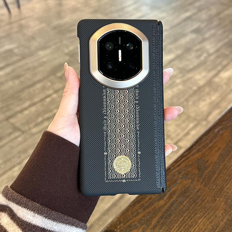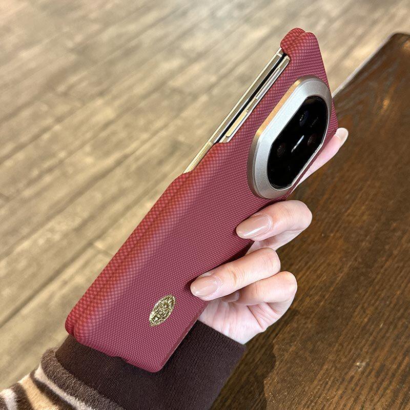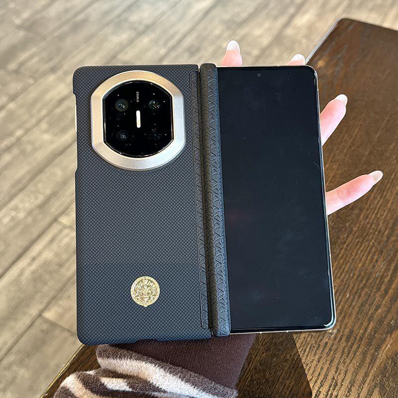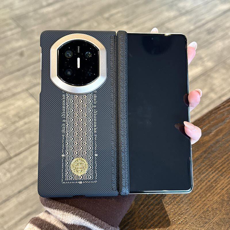 「顺财运」适用华为matex7手机壳新款真皮中轴铰链保护X7典藏版超薄折叠屏X6芳纶纤维凯夫拉纹路X5磁吸壳