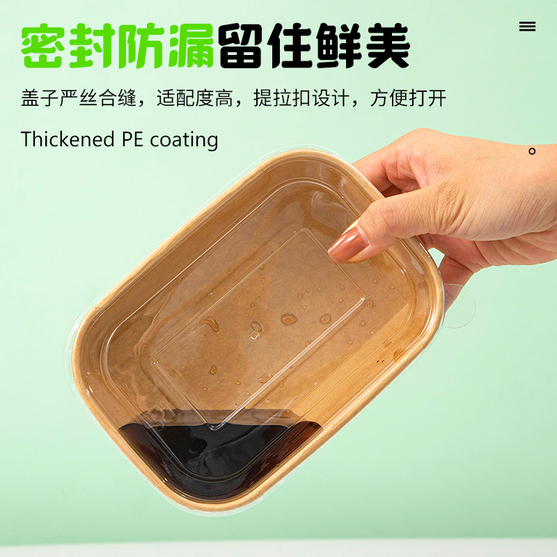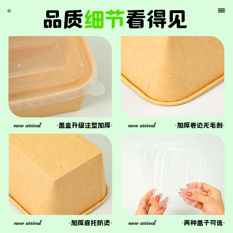 一次性餐盒牛皮纸水果快餐饭盒轻食野餐便当纸盒方形打包盒沙拉盒