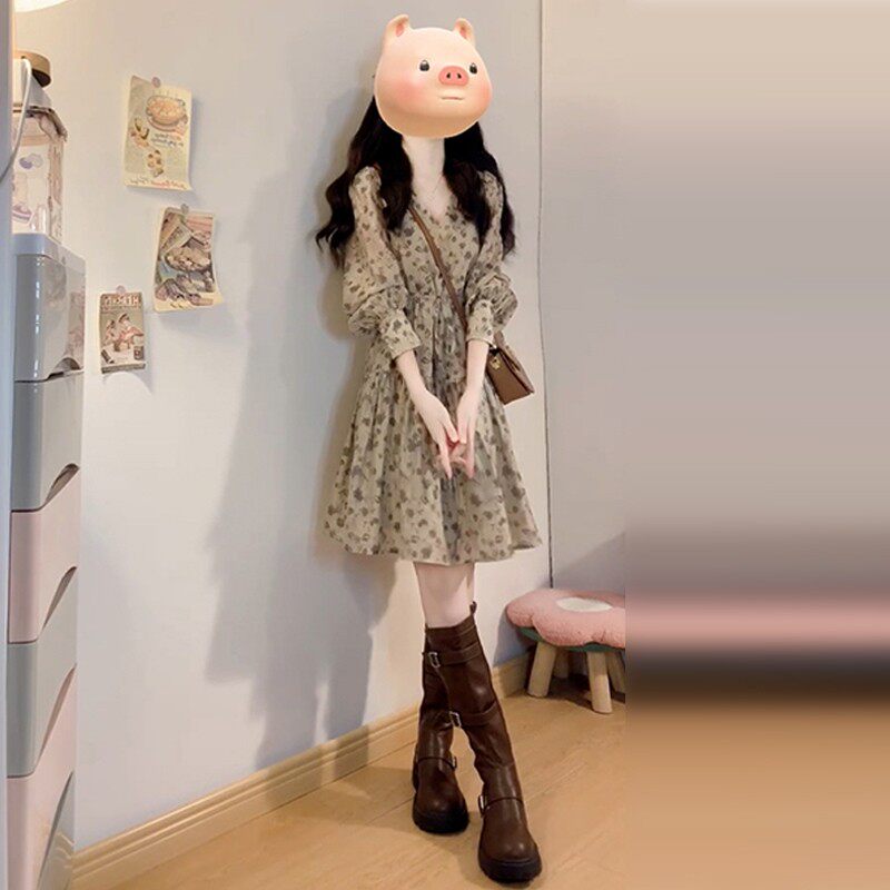 法国Rixo kiel法式v领长袖碎花连衣裙子女春季高级感小个子短裙
