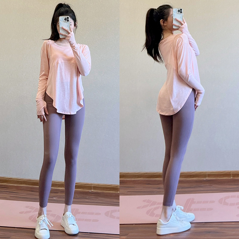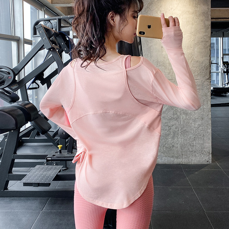 运动上衣女长袖宽松罩衫速干大码健身服粉色瑜伽服训练服春季新款
