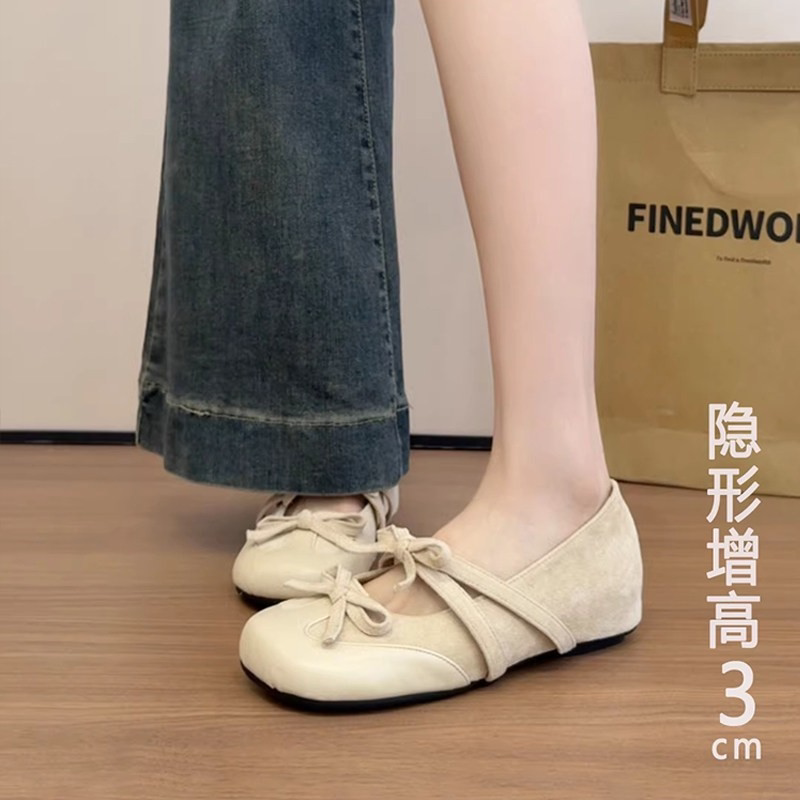 法式内增高玛丽珍鞋女2026春季新款一字带蝴蝶结配裙子浅口晚晚鞋