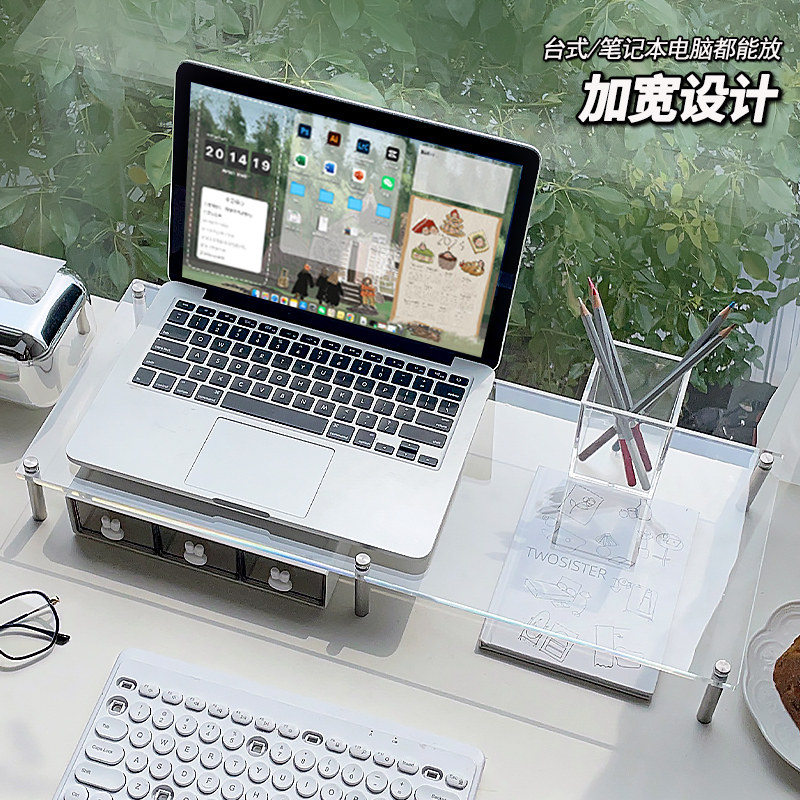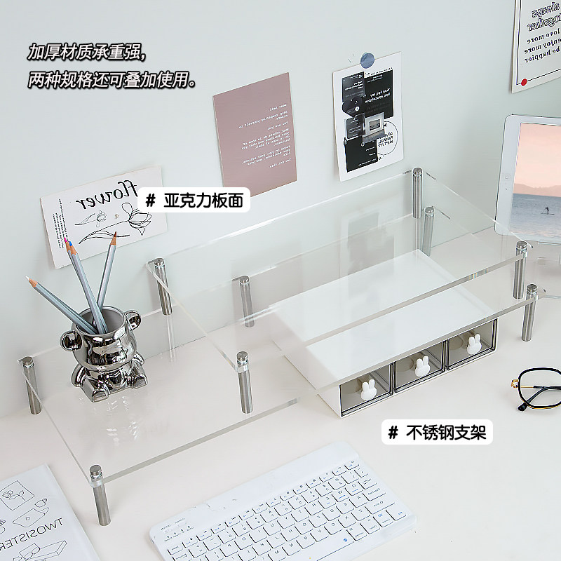 台式电脑好物增高架办公室工位桌面笔记本显示器亚克力收纳置物架