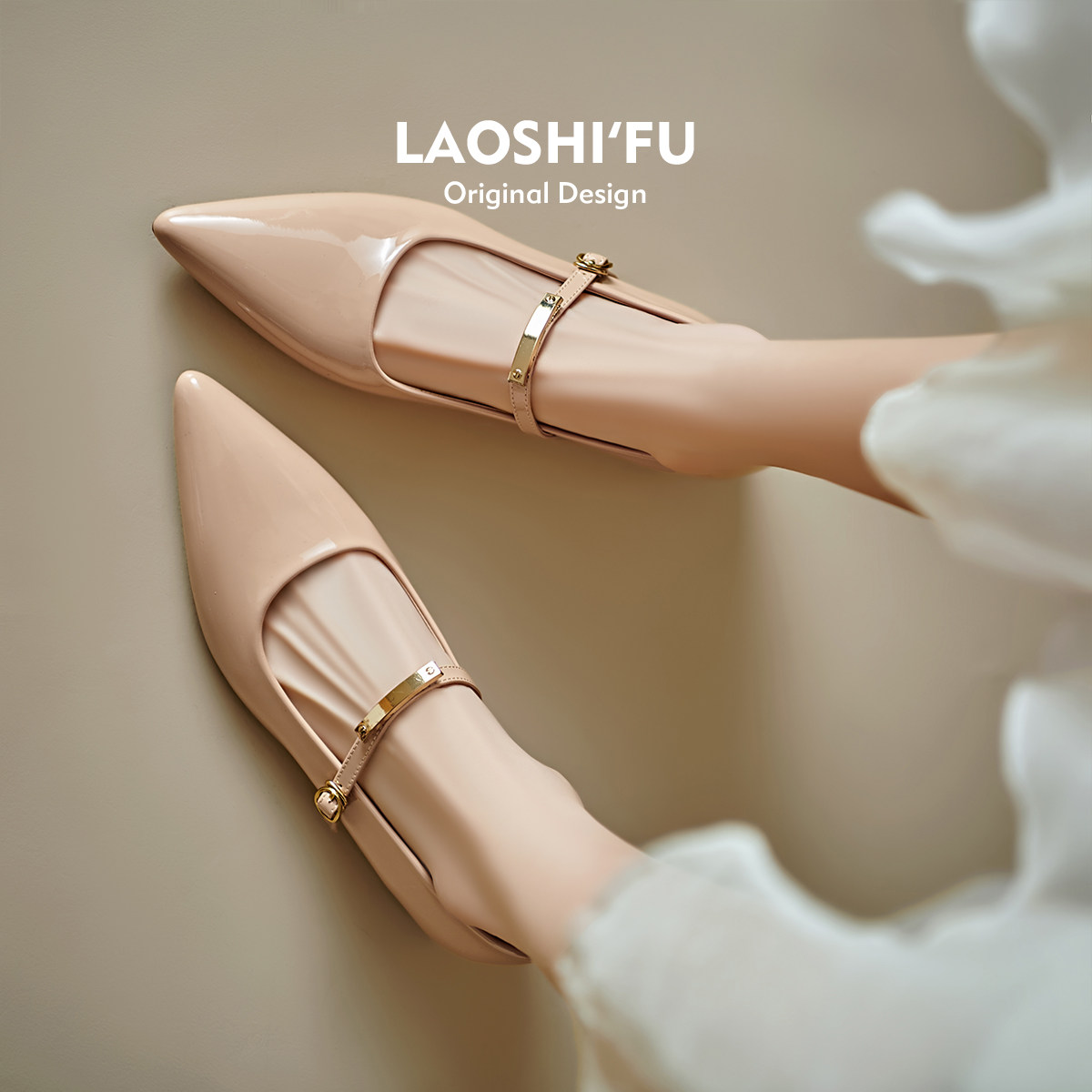 羊皮版!法式内增高3CM尖头浅口单鞋女气质一字扣带平底玛丽珍鞋