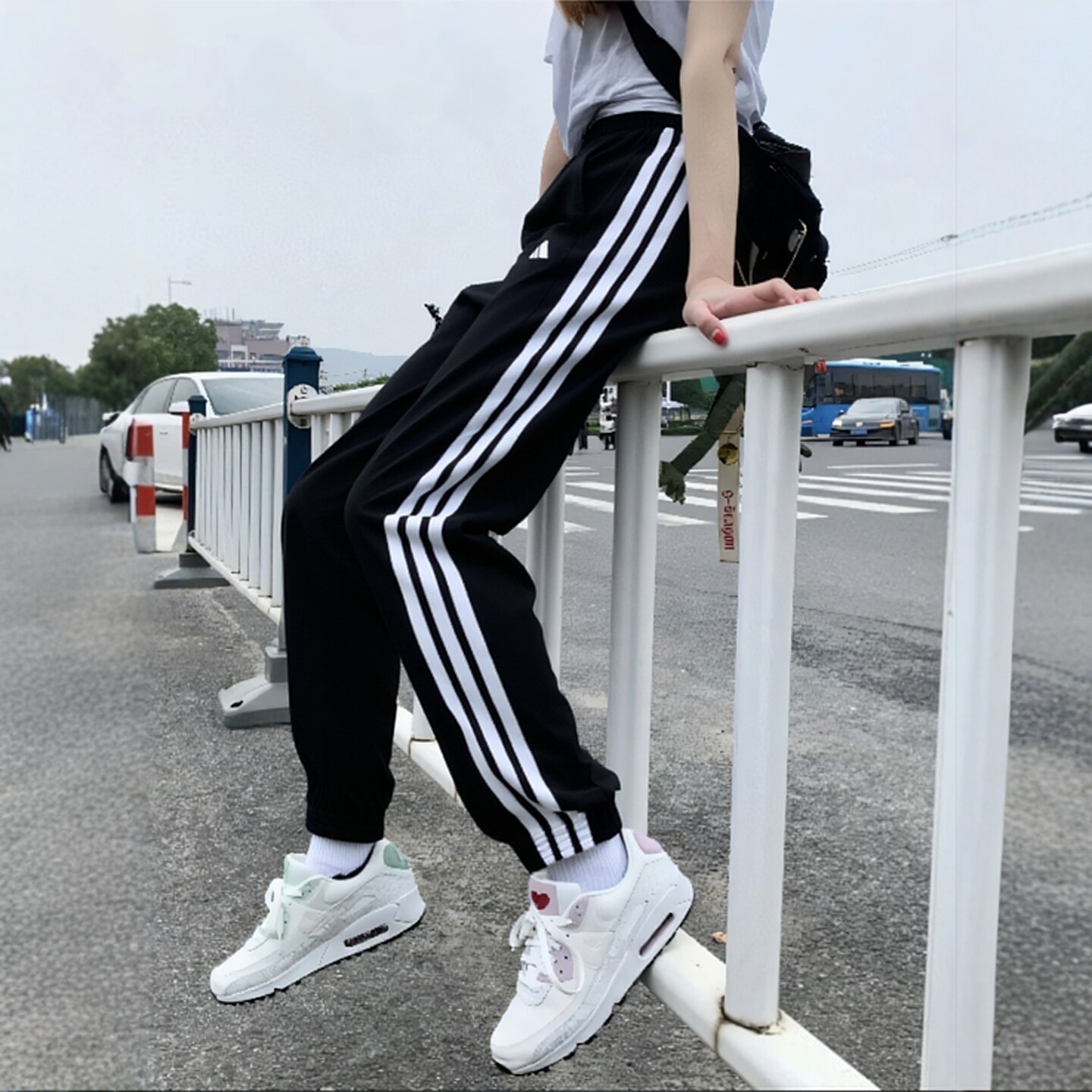 阿迪达斯裤子女裤夏季新款运动裤薄款透气速干裤黑色束脚休闲长裤