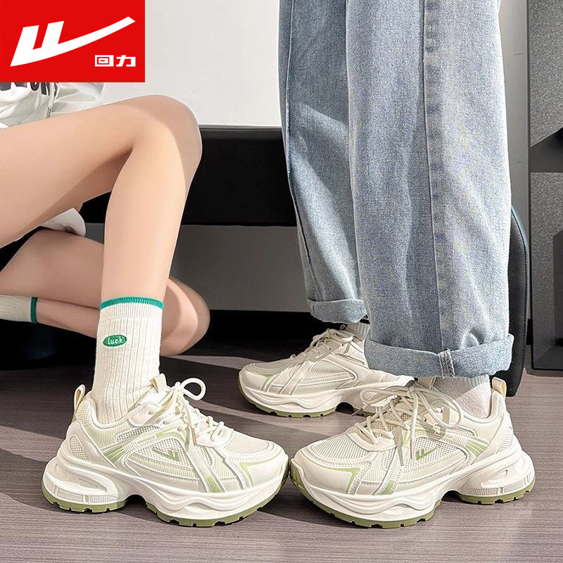 回力情侣运动鞋2026春夏网面透气增高老爹鞋女休闲鞋薄款小白鞋子