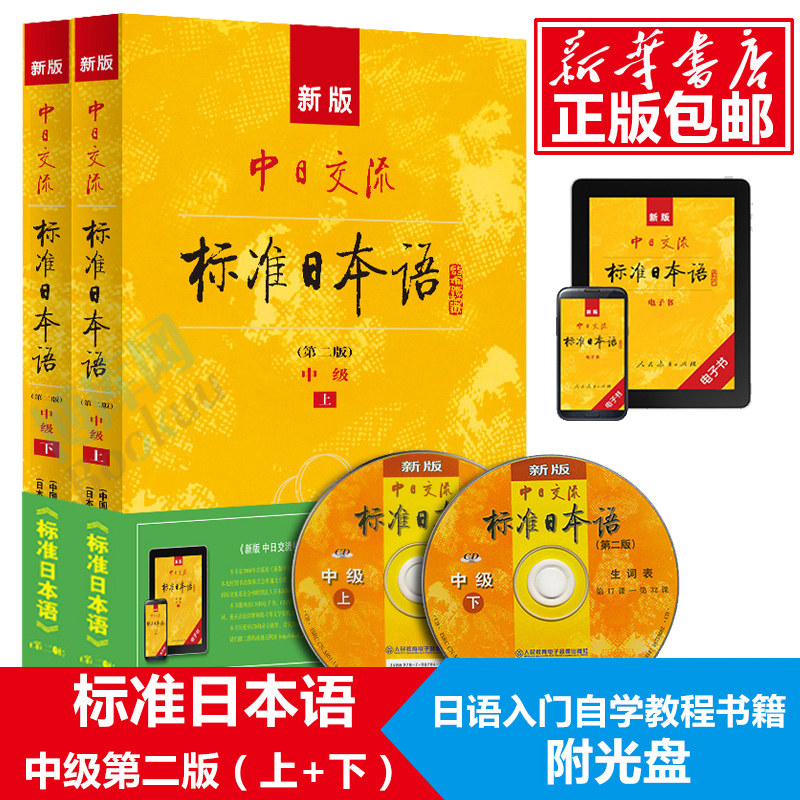 现货新版中日交流标准日本语中级上下两册 附光盘 第二版2版新标准日本语书 标准日语自学入门基础教程日文新标日中级教材正版包邮