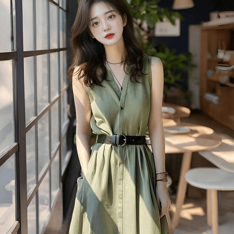 无袖连衣裙子女士装春秋2026年新款夏季高级感收腰气质a字中长裙