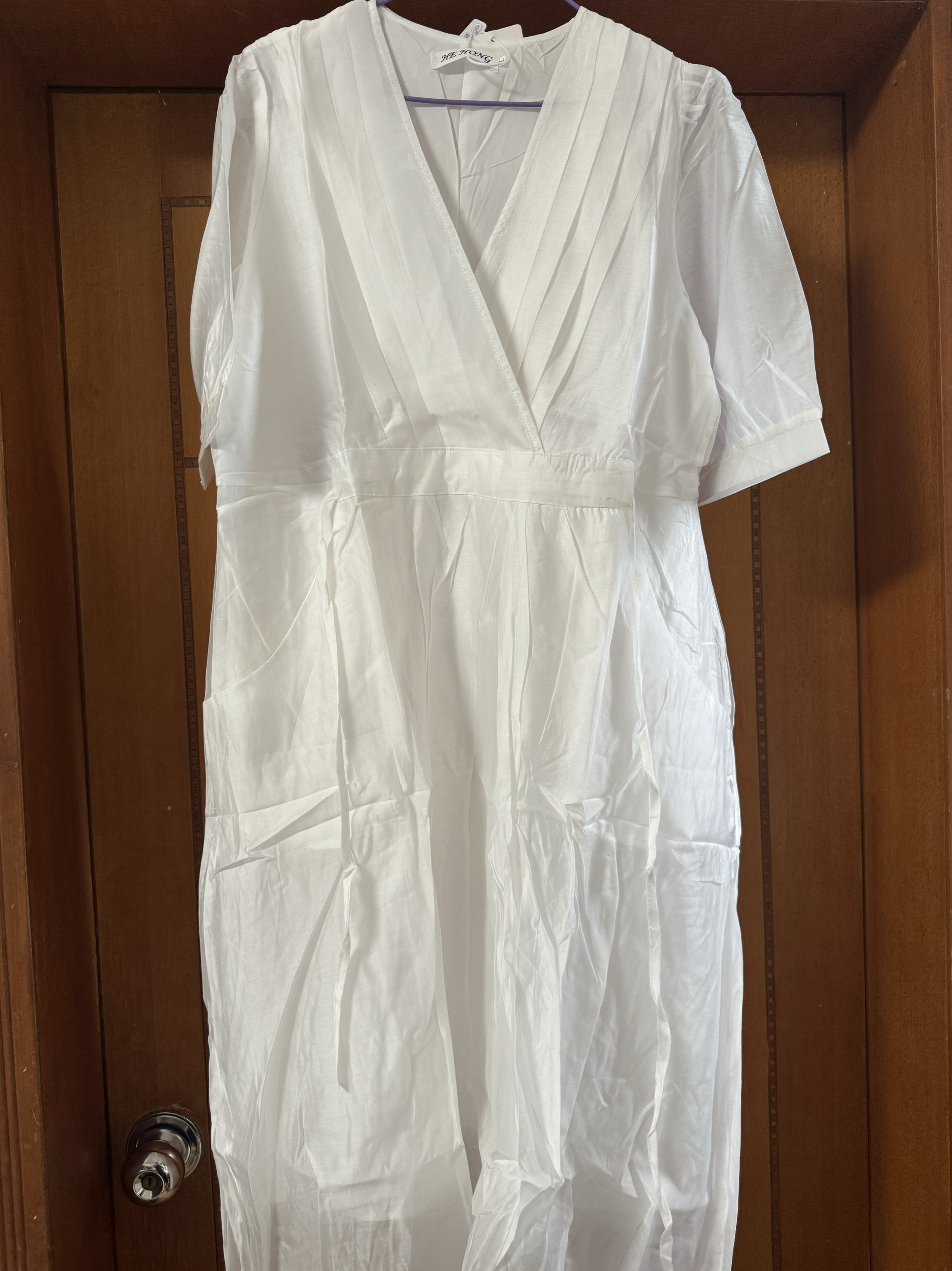 白色连衣裙2025新款女夏季轻奢高级感气质V领收腰a字显瘦天丝长裙
