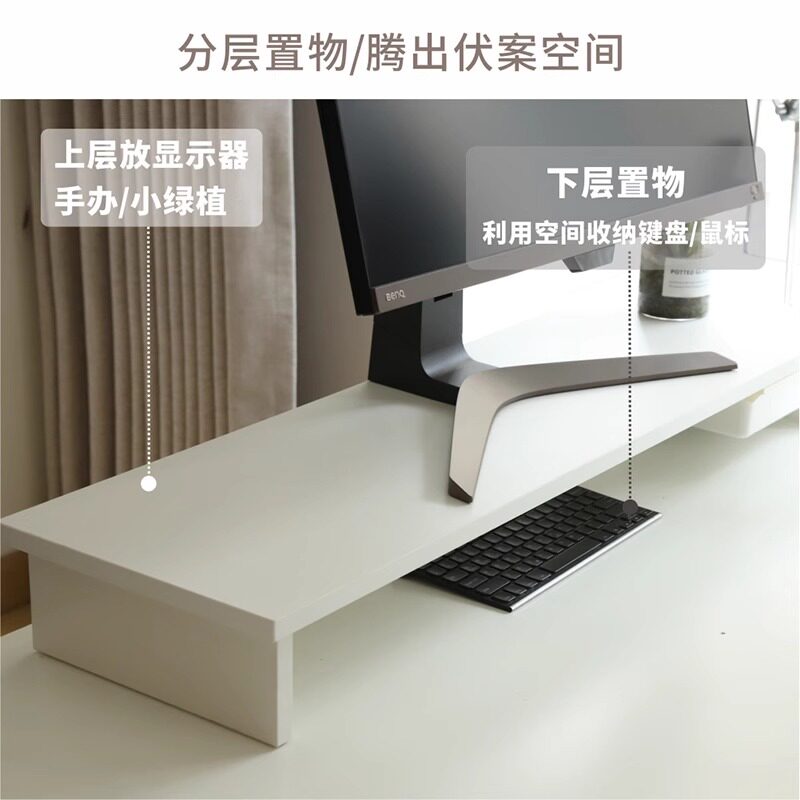 小木良品屏幕增高架桌面电脑显示器白色支架书桌办公桌收纳置物架