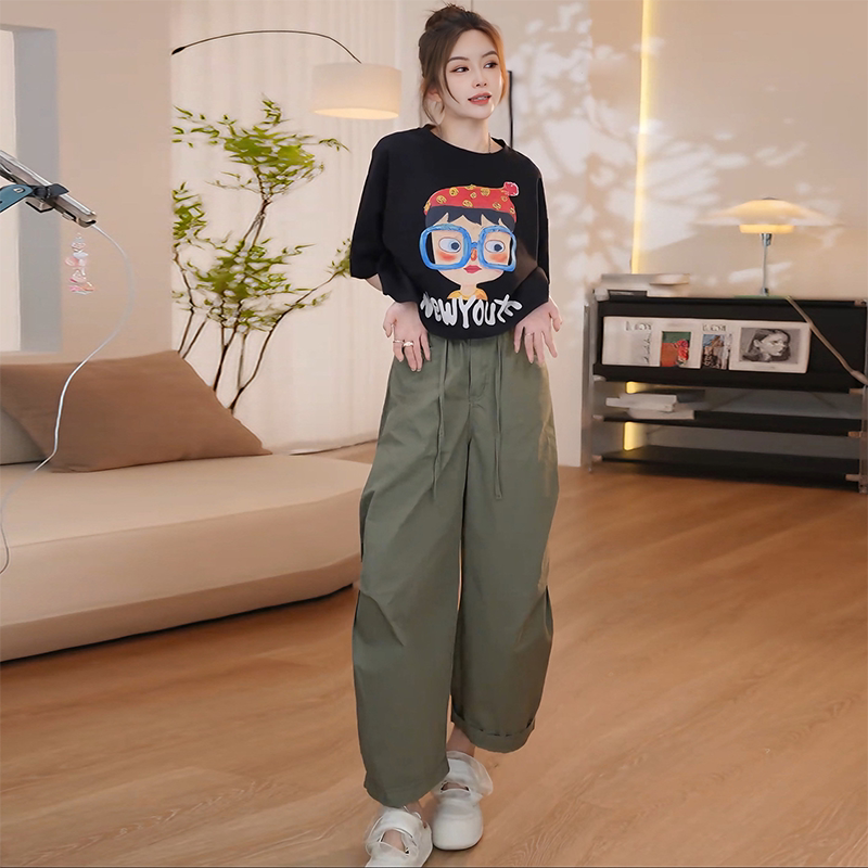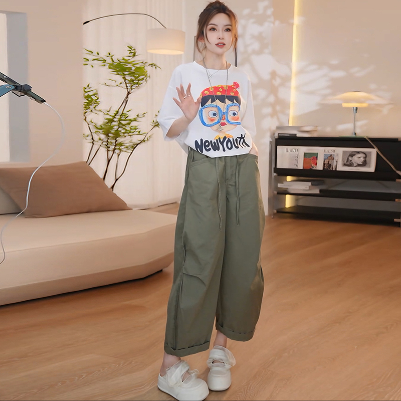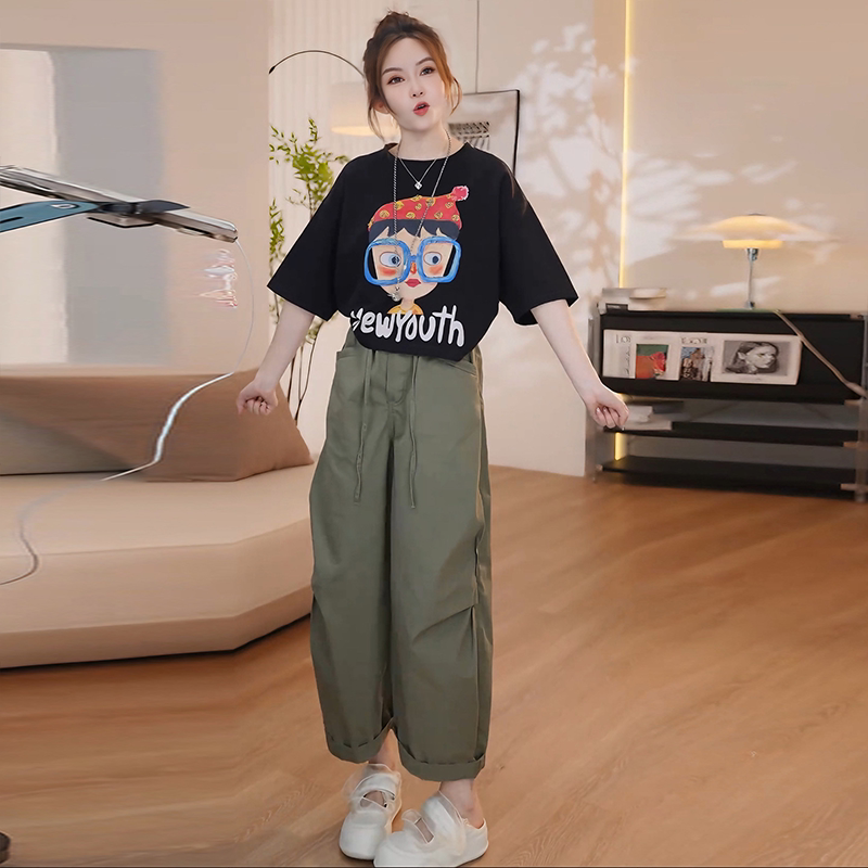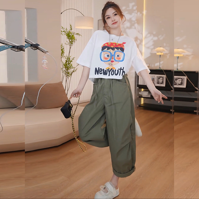 夏日穿搭套装女2026新款夏季休闲印花短袖t恤阔腿休闲裤子两件套