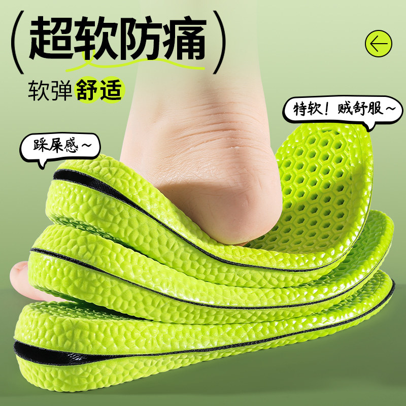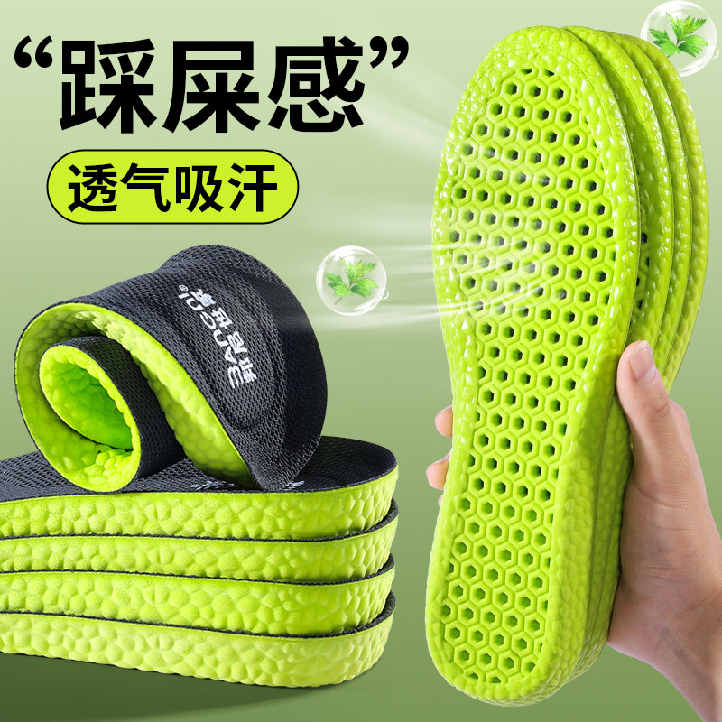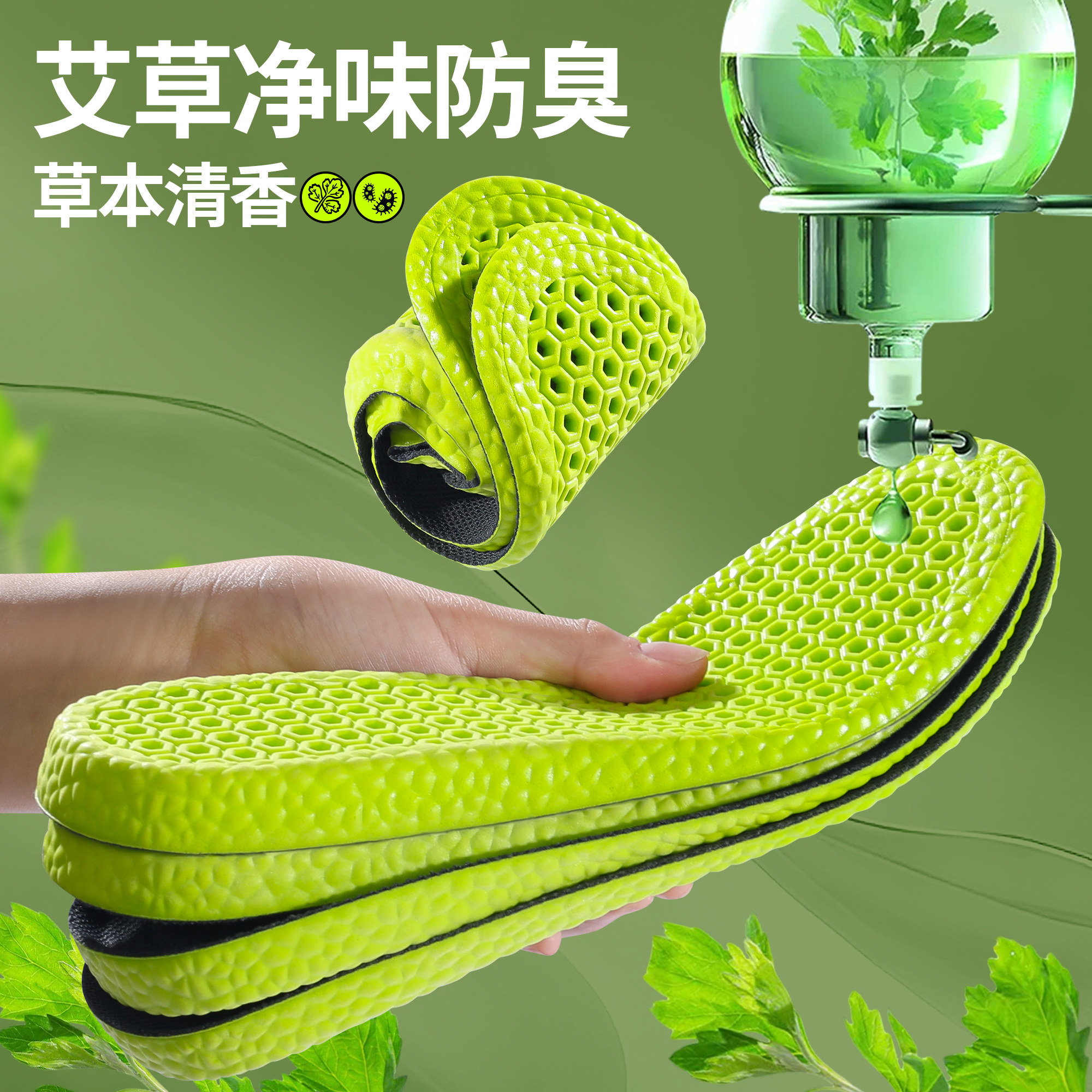 艾草防臭鞋垫男款运动减震透气吸汗除臭女踩屎感超软防痛舒适防滑