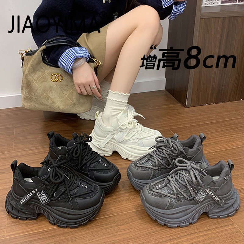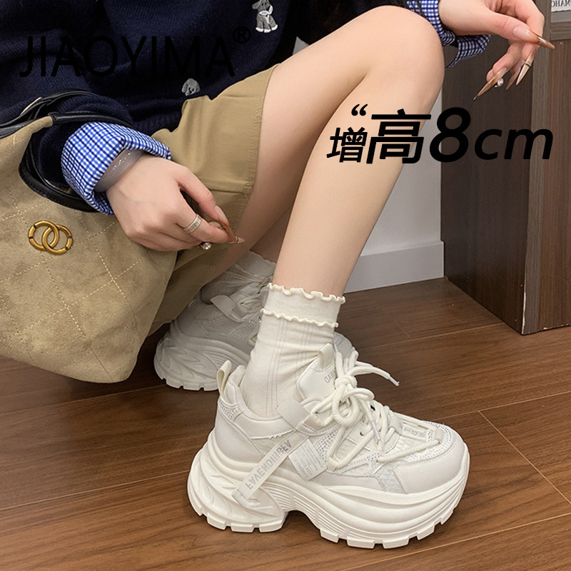 内增高老爹鞋女2026新款厚底运动休闲鞋网面透气百搭轻便小白鞋