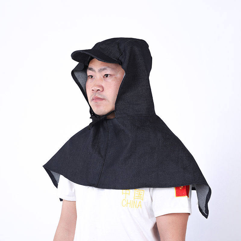 工厂直销耐用套头系带劳保牛仔披风帽防尘帽披肩帽工作防尘帽大号