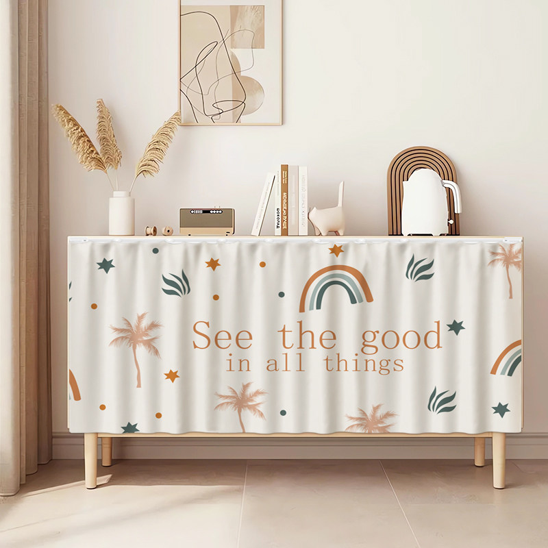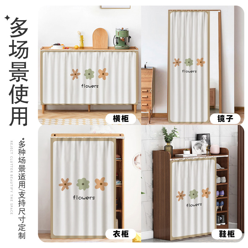 柜子遮挡帘鞋架杂物货架遮丑布帘衣柜免打孔防尘帘厨房橱柜遮挡帘