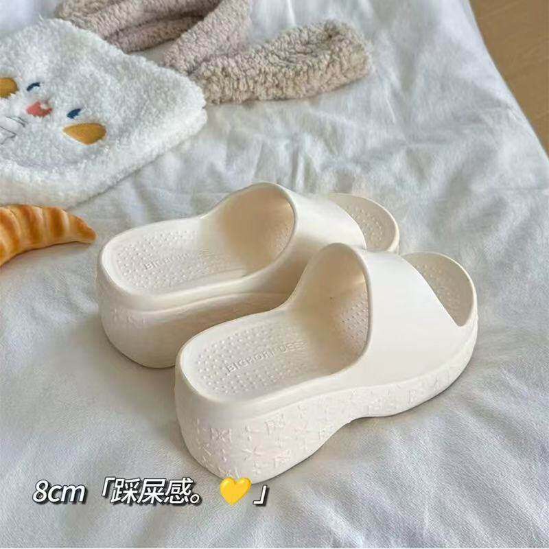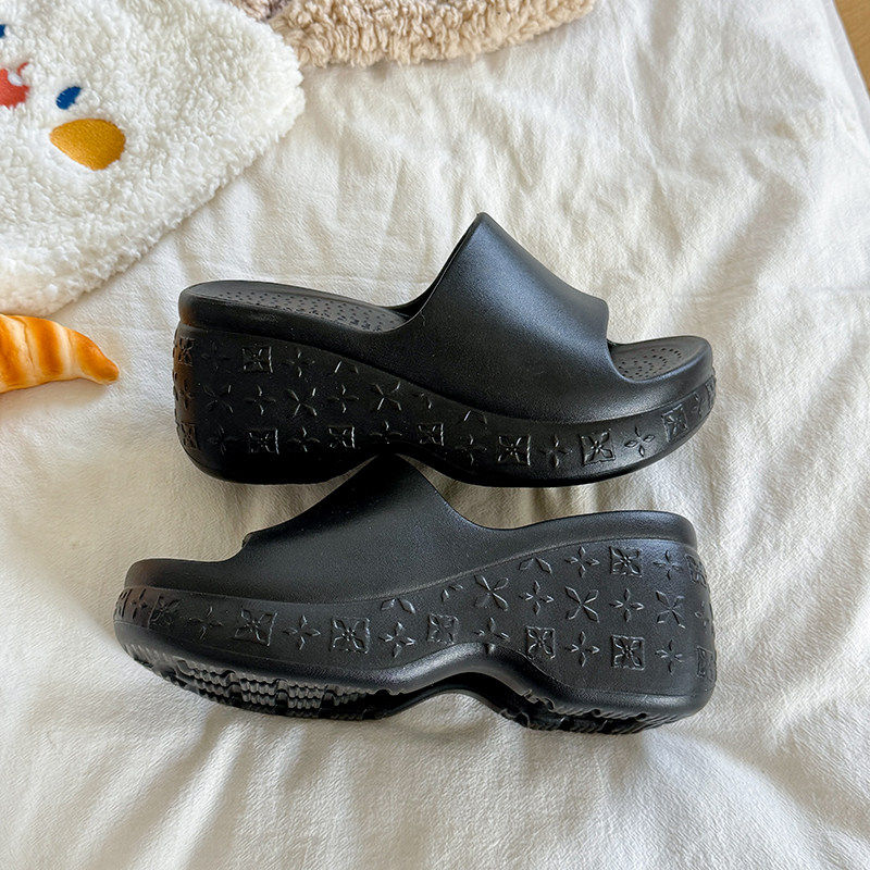 8cm厚底坡跟一字凉拖鞋女小个子增高外穿防滑夏季ins黑色潮流沙滩