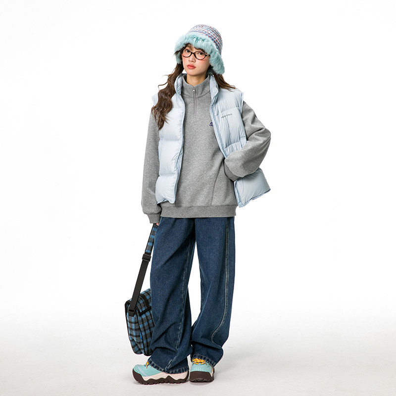 诺诺公主S1N初中生加绒弯刀牛仔裤女2026新款春秋韩系休闲阔腿裤