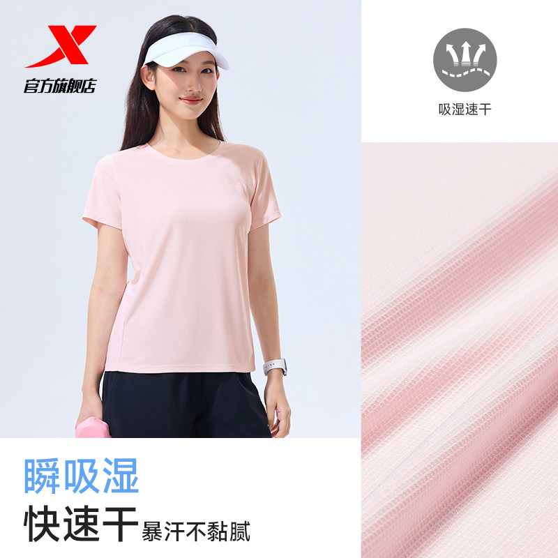 特步运动套装女款春夏季女士速干衣羽毛球跑步运动服短袖t恤短裤