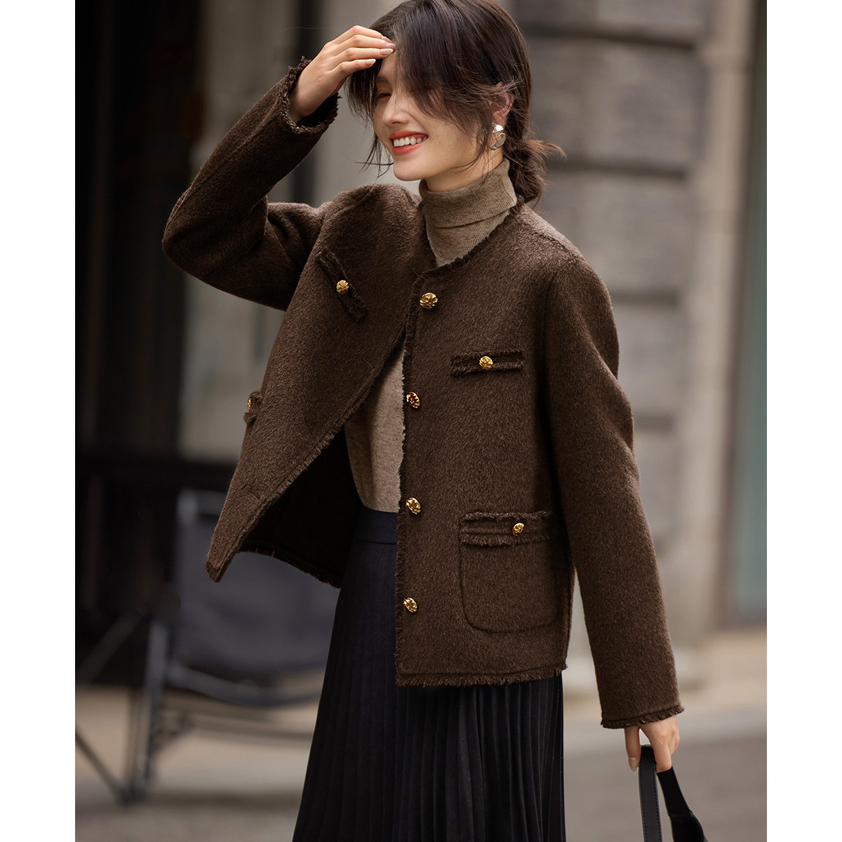 [博主同款]XWI欣未优雅小香风双面呢外套女秋冬正肩显瘦毛呢大衣
