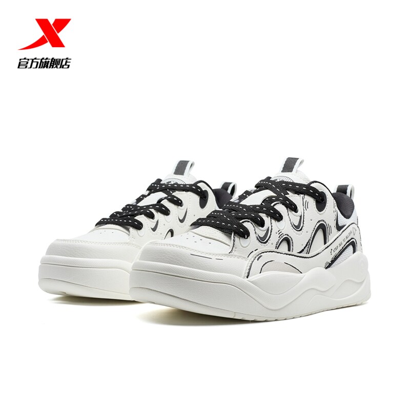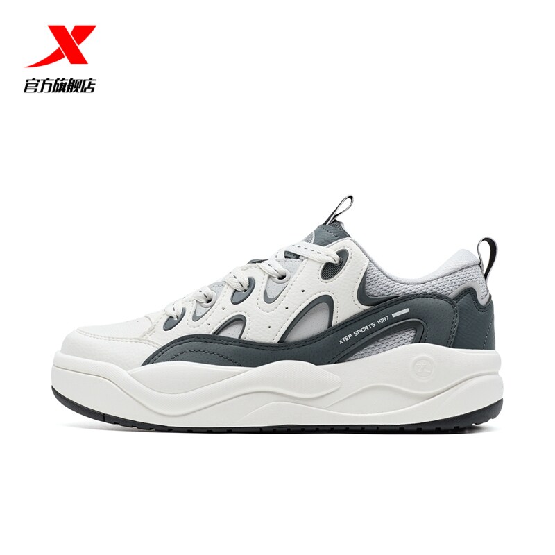 特步征程板鞋|男鞋2026春季新款正品百搭休闲运动鞋厚底革面增高